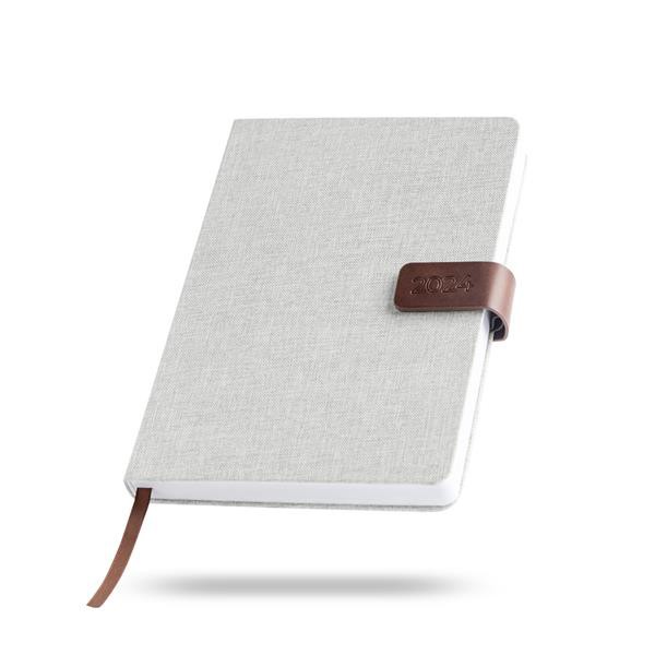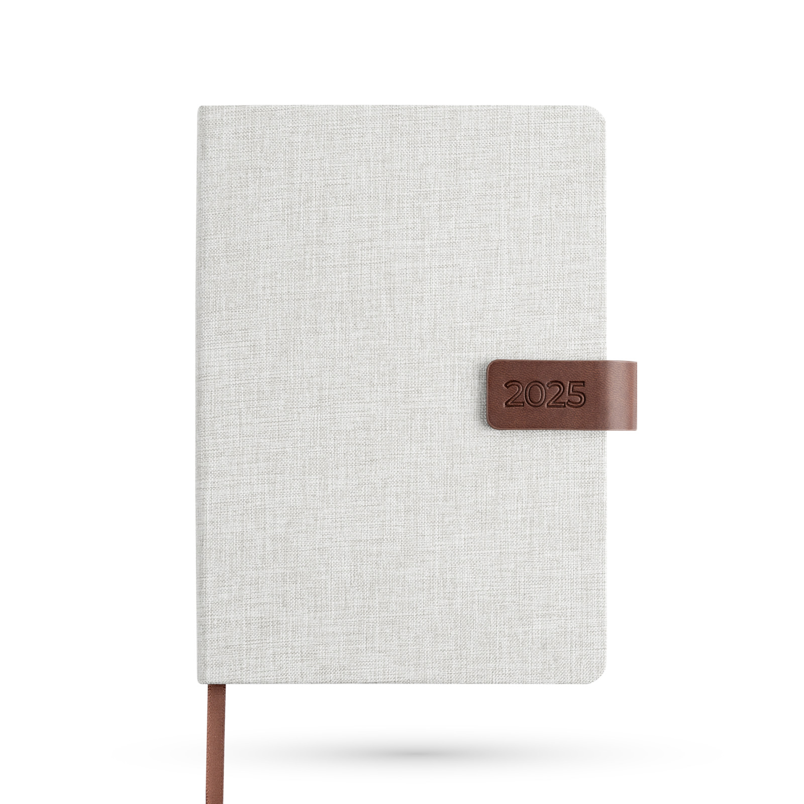 San Marino - Agenda diária A5. Capa em linho e detalhe em PU com fecho magnético. Suporte para esferográfica e fitilho à cor da agenda. Com 336 páginas , em papel branco 70gr e certificação FSC (papel proveniente de florestas geridas de forma responsável). Idiomas principais: Português e Espanhol. No interior inclui: espaço para preenchimento de dados pessoais; calendário completo de 2026 e semestre de 2025 e 2027; feriados em lista; plano de férias; plano diário 2026 e espaço para preenchimento de contactos importantes (de A-Z).