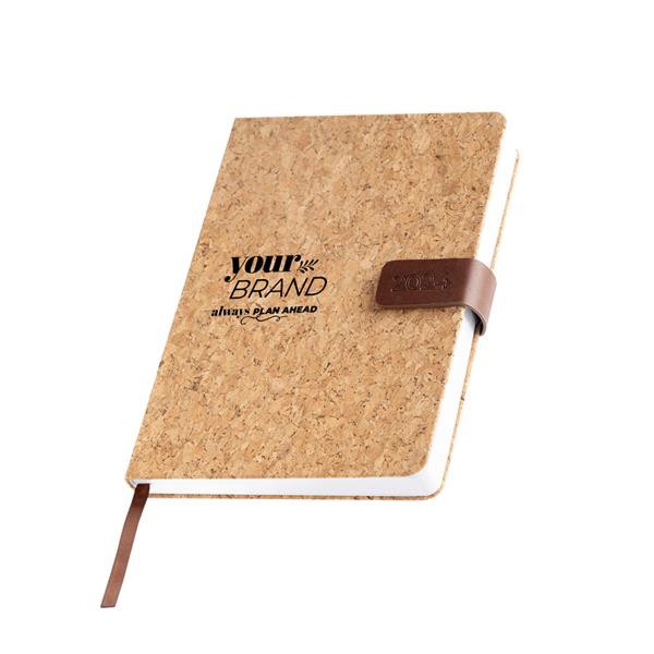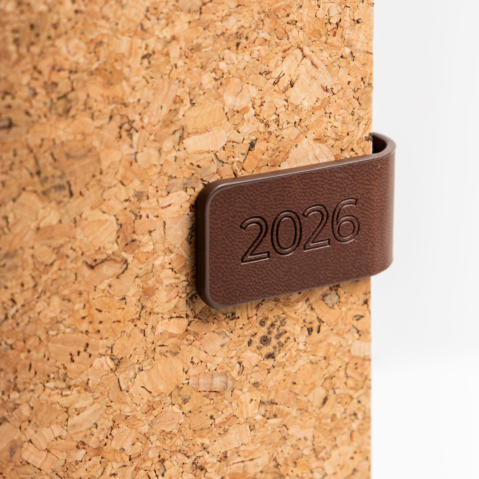 Stockholm - Agenda diária A5. Capa em cortiça e detalhe em PU com fecho magnético. Suporte para esferográfica e fitilho castanho. Com 336 páginas , em papel branco 70g, papel proveniente de florestas geridas de forma responsável. Idiomas principais: Português e Espanhol. No interior inclui: espaço para preenchimento de dados pessoais; calendário completo de 2026 e semestre de 2025 e 2027; feriados em lista; plano de férias; plano diário 2026 e espaço para preenchimento de contactos importantes (de A-Z).