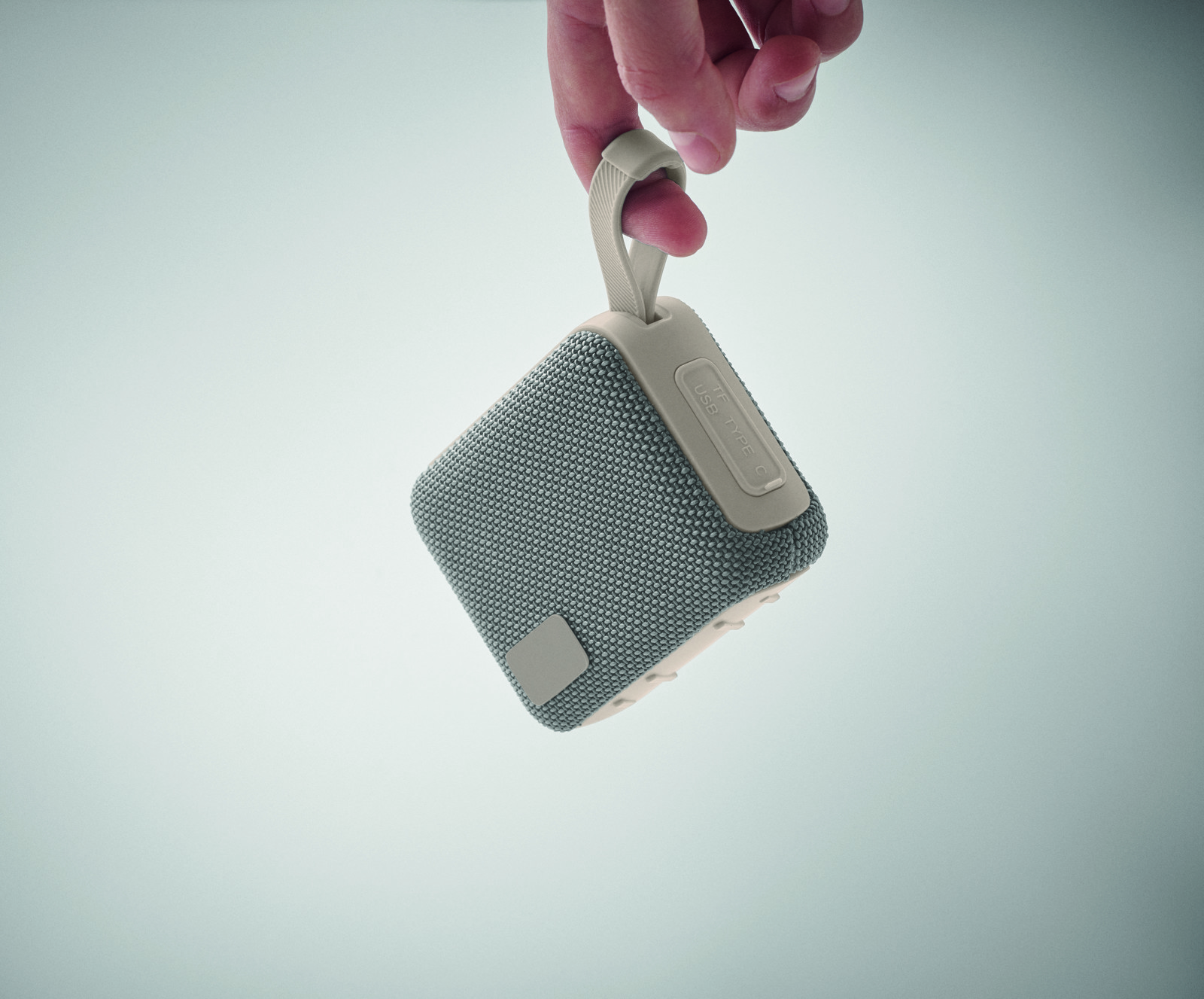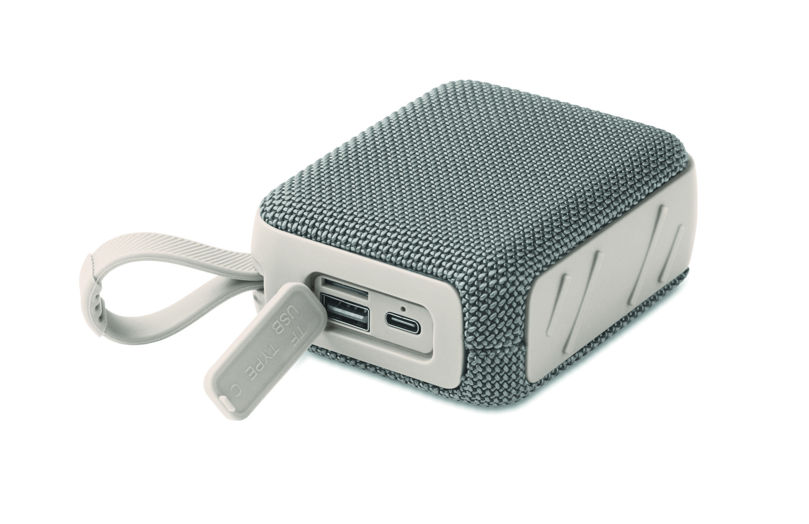 Altifalante 5.0 sem fios em ABS com tecido RPET e cabo de suspensão. 1 bateria recarregável de iões de lítio de 800 mAh incluída. Inclui uma porta para cartão SD e um cabo AUX/USB. Dados de saída: 5W, 3 Ohm e 5V. Tempo de reprodução: aprox. 3h