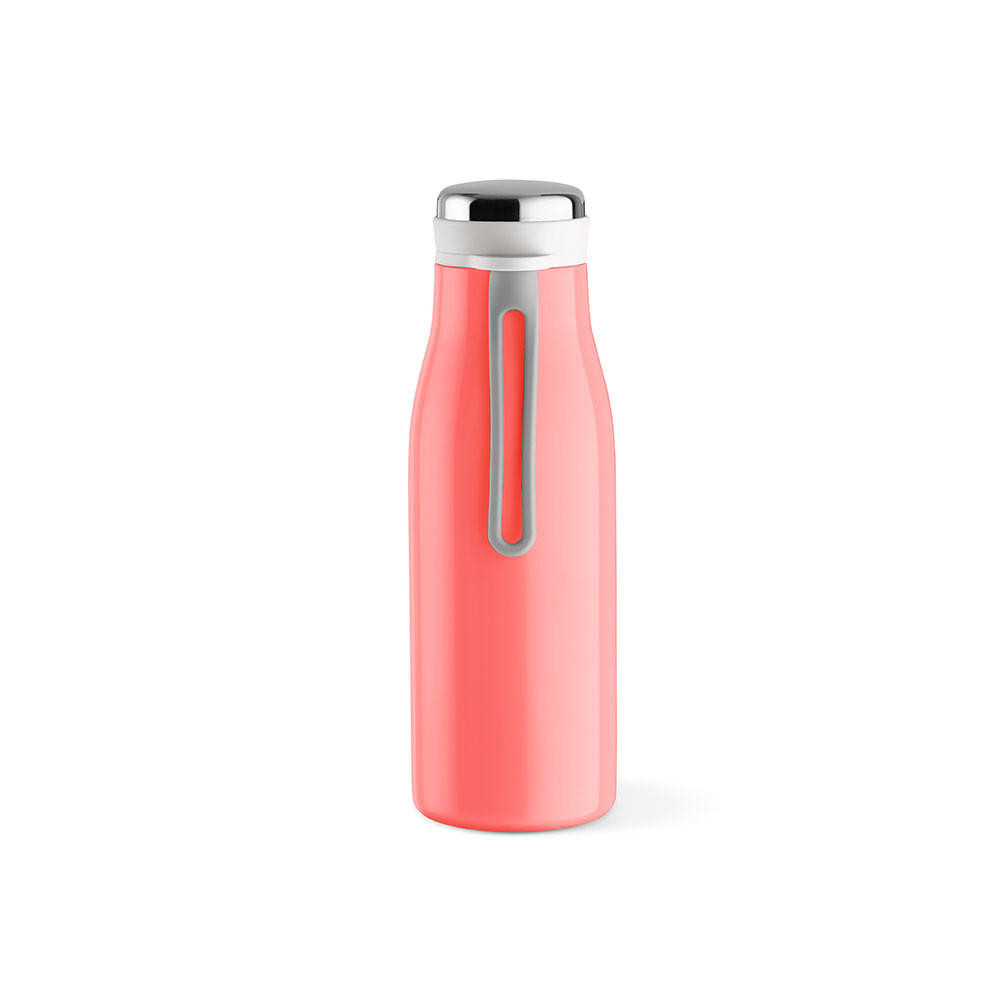 A garrafa Arkansas 350 tem uma capacidade de 400ml (380ml líquidos), é feita em aço inoxidável reciclado e está disponível em 6 cores pastel. Possui parede dupla, é à prova de fugas e mantém as bebidas quentes durante 14 horas e frias durante 48 horas. Inclui uma pega prática para transporte. Embalada individualmente numa caixa de kraft.