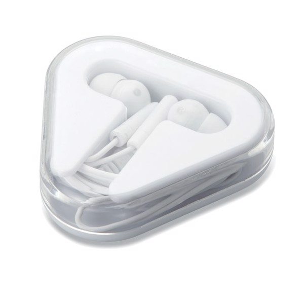 Auscultadores em PVC, em base triangular em PS. Comprimento do cabo 120 cm.