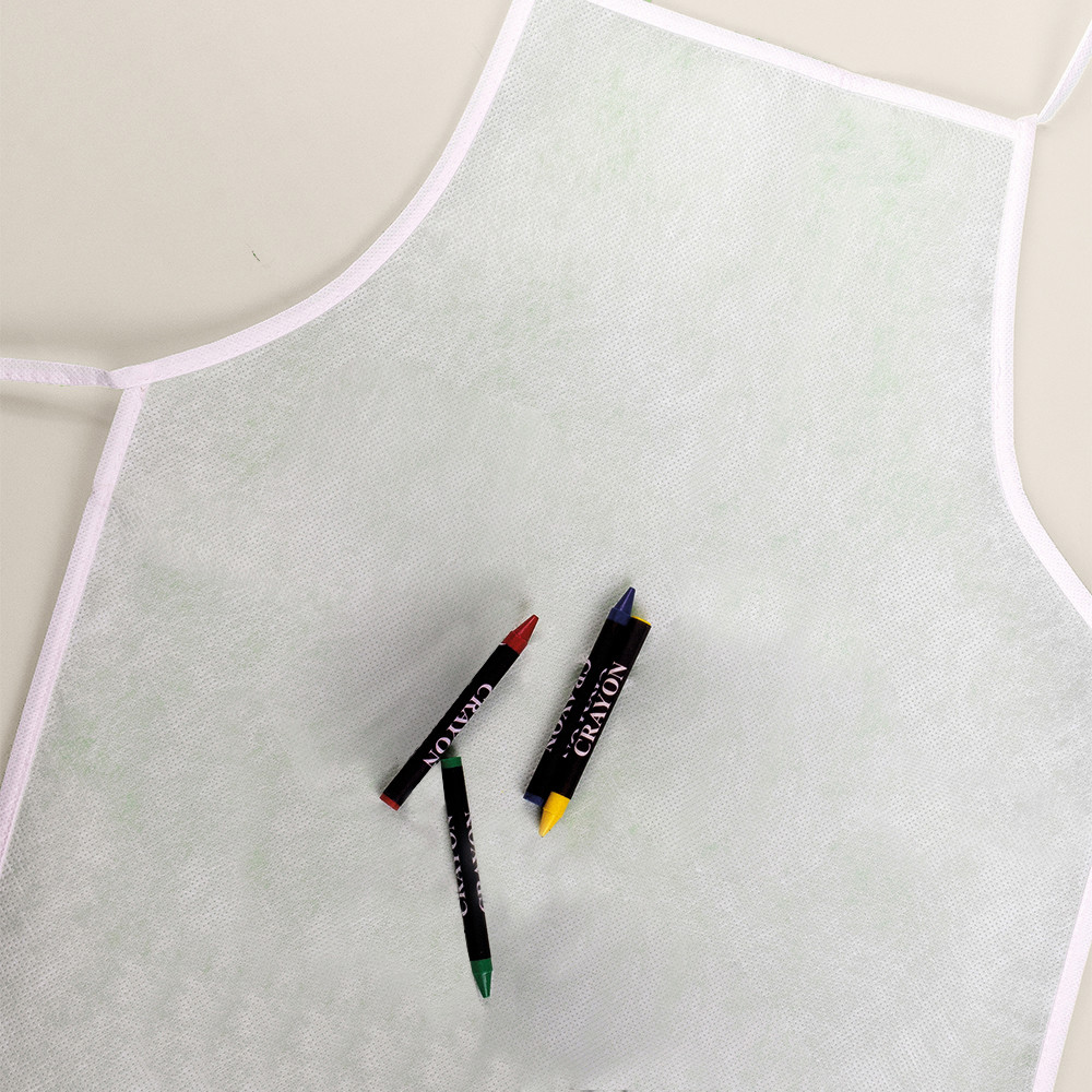 Avental infantil fabricado em non woven RPET liso para que possas colocar o desenho de sua preferência Inclui um conjunto de tintas para colorir.