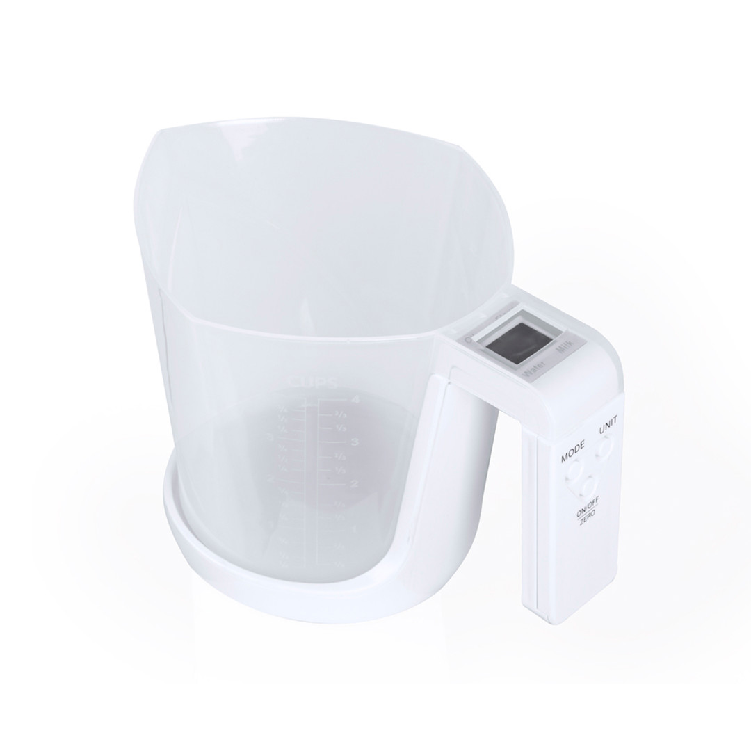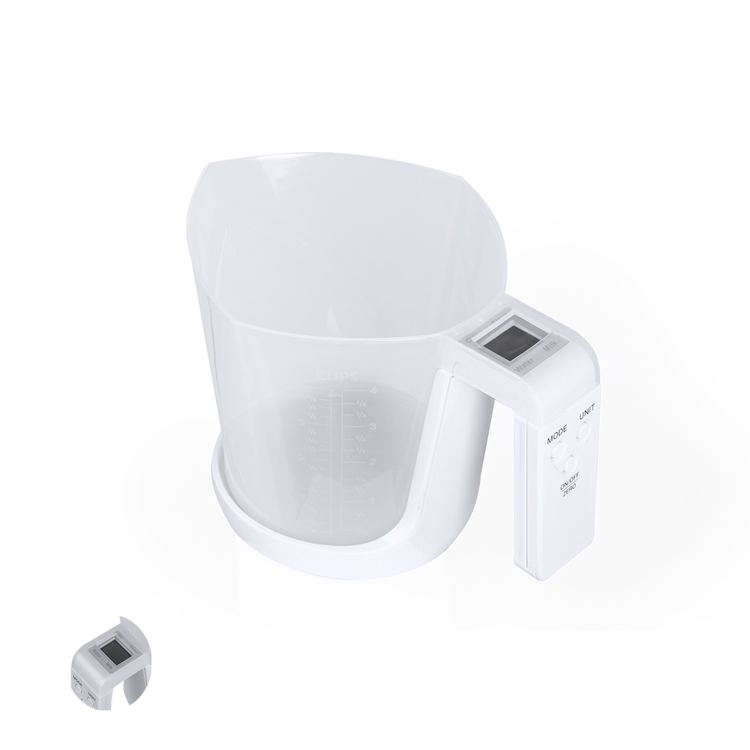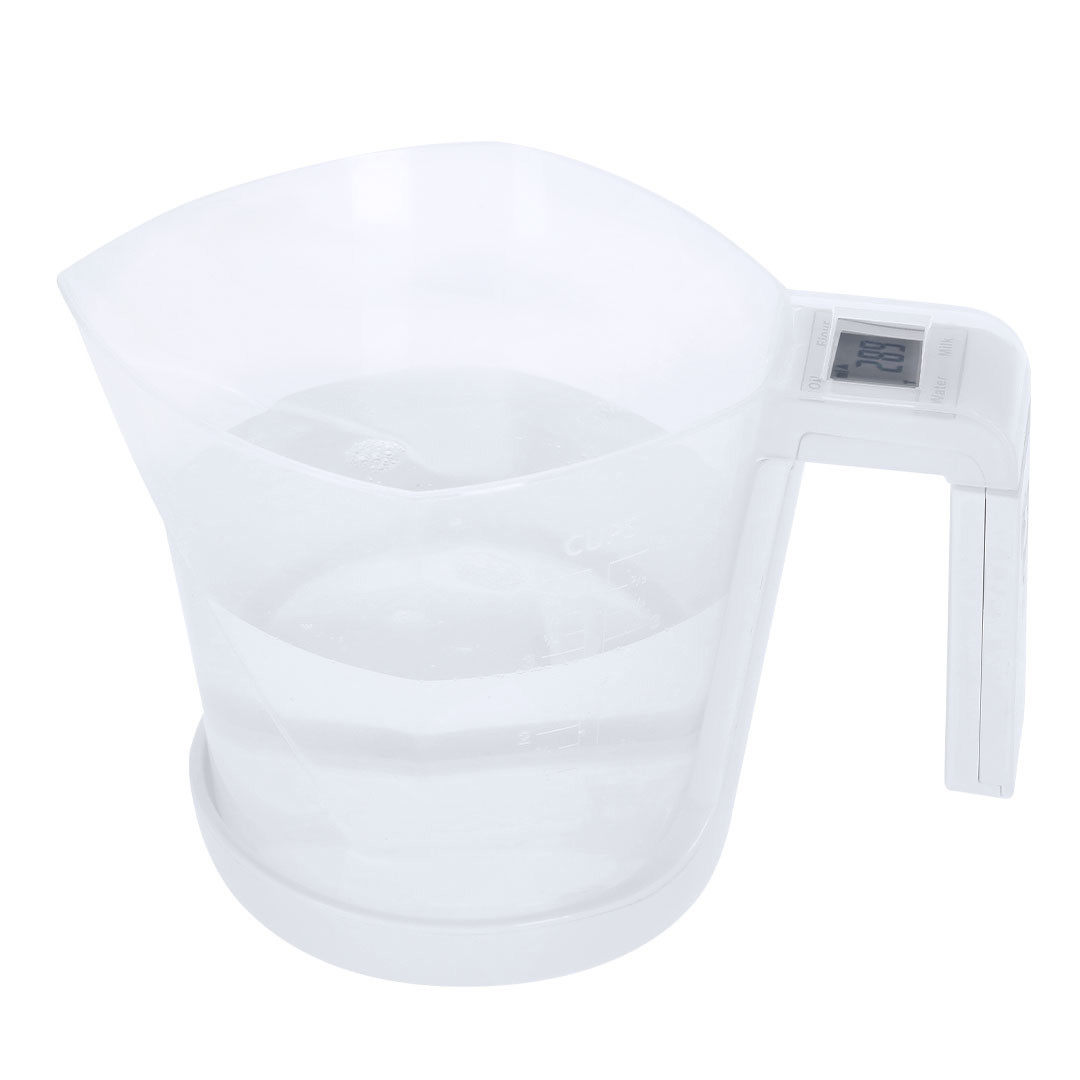 Balança com jarro medidor integrado, fabricada numa resistente combinação de PP e ABS. Ecrã LCD com controlo por botões e função de tara, com capacidade máxima para 5 kg de peso e adequada para medir líquidos ou sólidos.Inclui um Jarro medidor de 1L de capacidade, com uma multiplicidade de opções e um vertedor para evitar derrames:-1L, com medidor lateral em secções de 50 ml.-32 oz, com medidor lateral com secções de 2 oz. -Medição rápida do volume de canecas.Funciona com pilha de botão (incluída) e vem apresentada individualmente em caixa. 1 L. Max 5 Kg. Pilha Botão Incluída