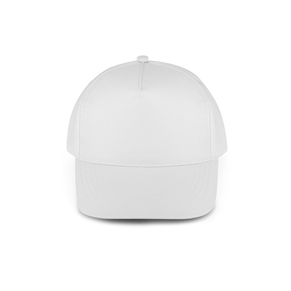 Boné em poliéster reciclado (100% rPET) com 5 painéis e ilhós para ventilação (210 g/m²). Ajustável com fecho aderente. Tamanho: 580 mm