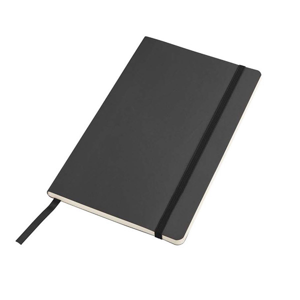 Bloco de notas A5, com capa em PU térmico maleável. Um brinde que prima pela diferença, especialmente pela sua capa mole em PU térrmico. De tamanho A5, conta com 160 páginas, em papel de 70g, proveniente de florestas geridas de forma responsável. Incluí fitilho e elástico.