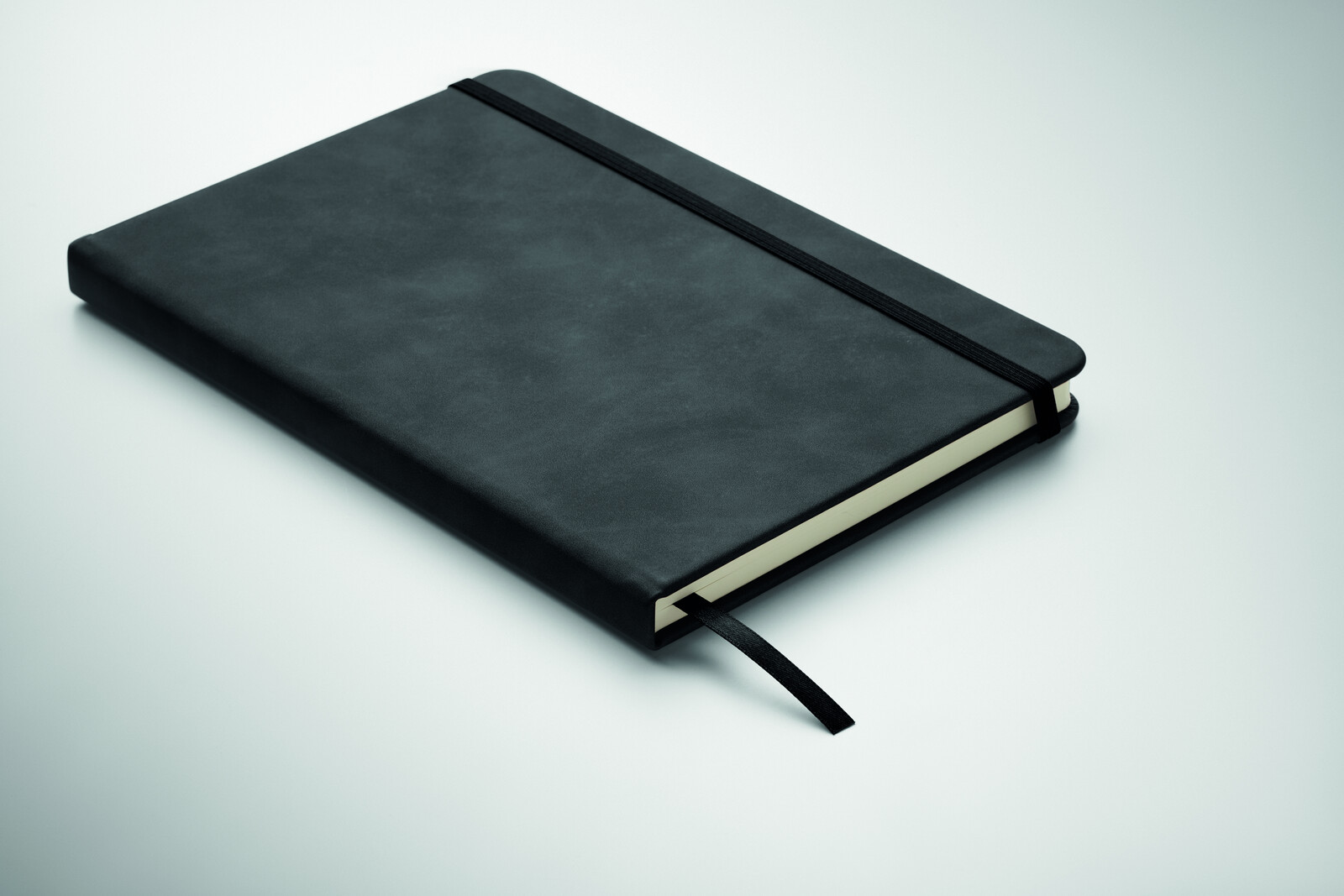 Bloco A5 com capa dura em PU fumado 40% reciclado e capa em PU 60%. Encadernação. 160 páginas pautadas (80 folhas), papel reciclado de 70 g/m². Marcador de página em poliéster a condizer.