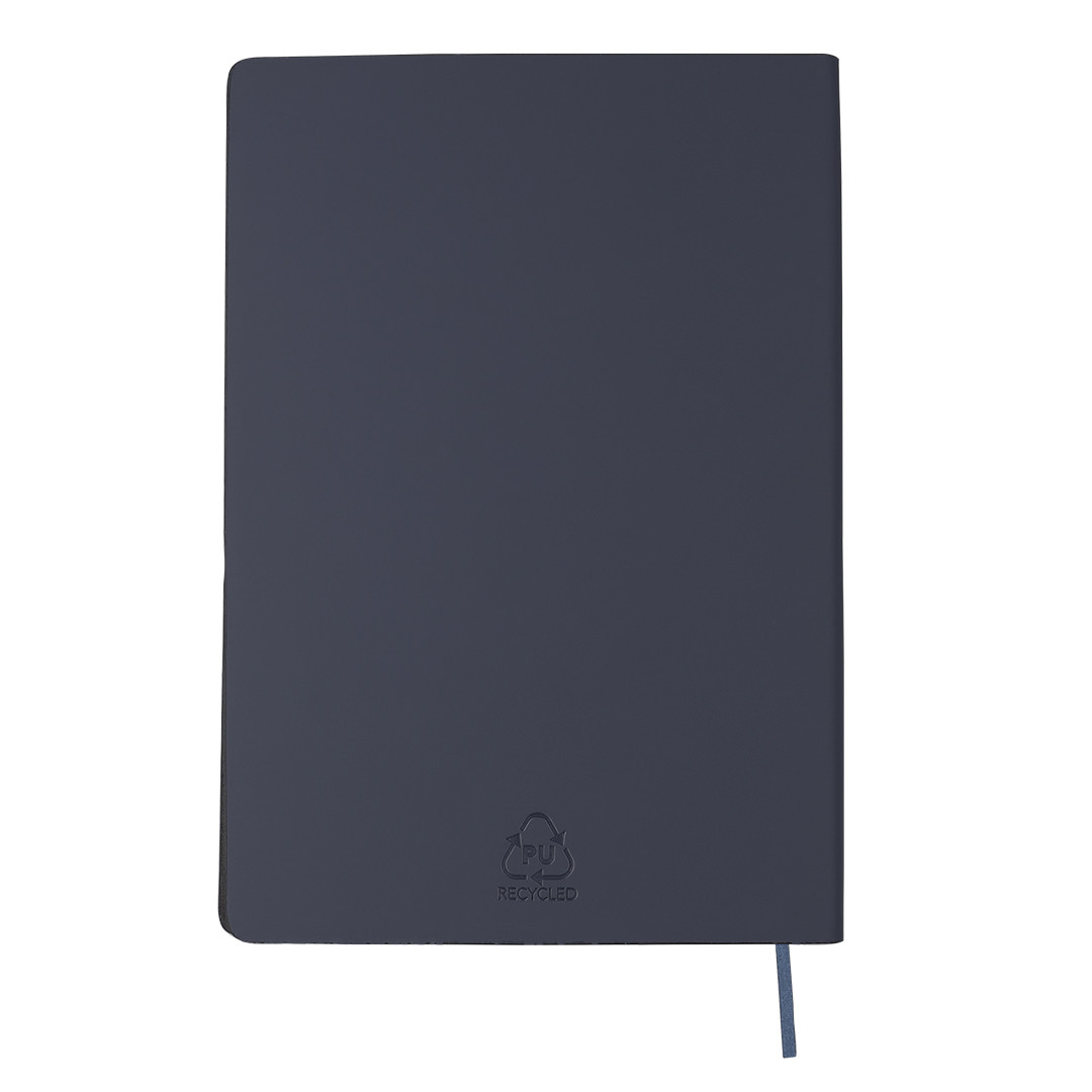 Bloco de notas com capa macia feita de couro PU reciclado. Interior com 80 folhas creme com layout de faixa única. Com marcador de página combinando e logotipo de couro PU reciclado.O couro PU reciclado destaca-se pela sua resistência e elasticidade. Este material reciclado e reciclável é uma opção sustentável que resgata as fibras descartadas nos processos de fabricação, minimizando assim o desperdício de material e contribuindo para reduzir o impacto ambiental, mantendo suas propriedades originais. Capa Flexível. 80 Folhas