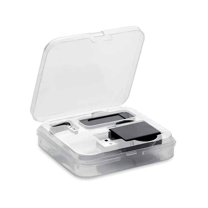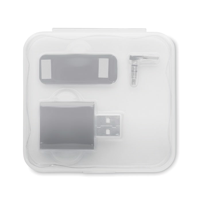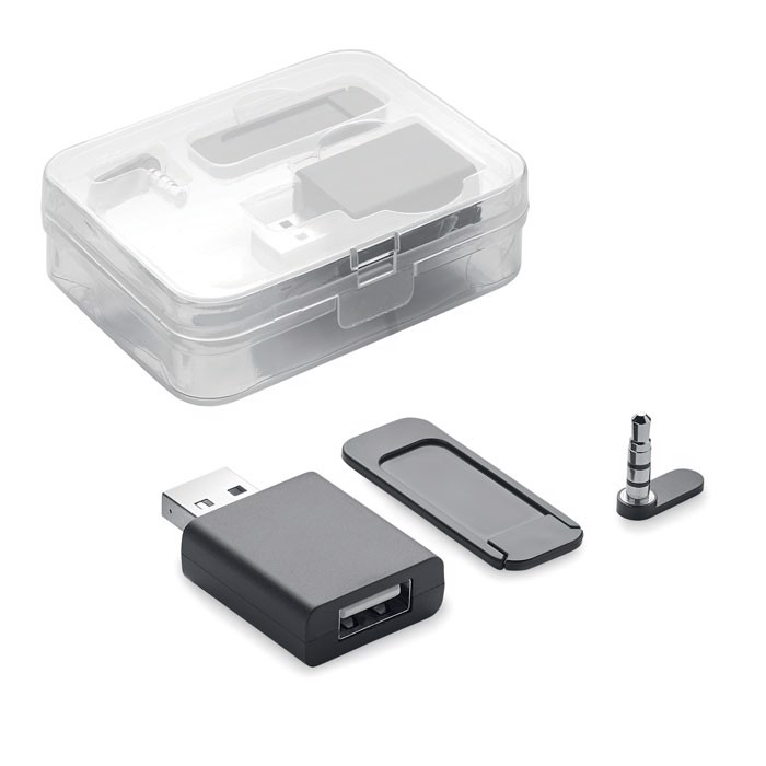 Conjunto em caixa PP com bloqueador de áudio, dados e webcam.