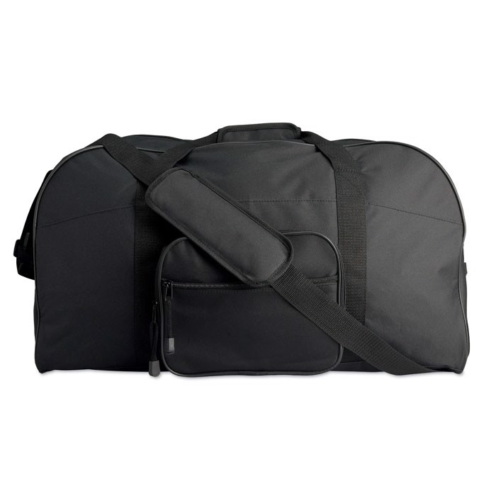 Bolsa de desporto ou viagem, com bolso frontal e alça ajustável e extraível. 600D Poliéster.