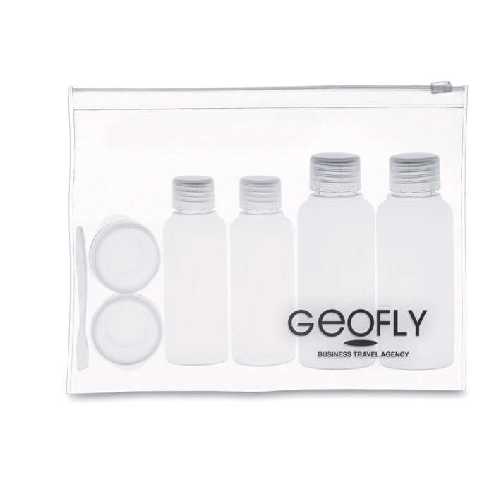 Bolsa ideal para viagens em avião, que inclui 6 frascos vazios. (100ml, 50ml and 10ml)