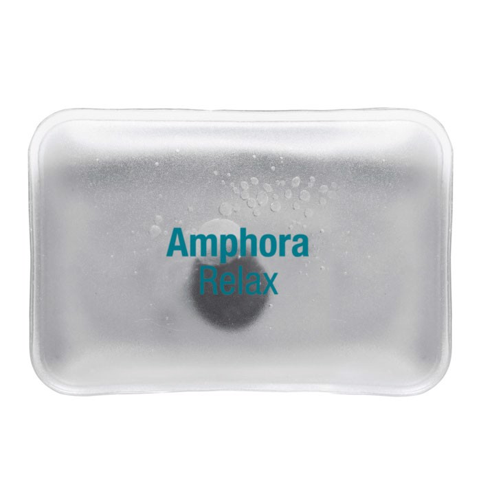 Almofadas térmicas para uso terapêutico. Não requer pilhas, basta pressionar a placa de metal do seu interior. Reutilizável.