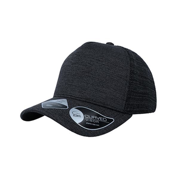 O boné de tecido em malha com propriedades para o alto desempenho. Knit Technology é uma técnica inovadora, que processa tecidos muito semelhantes ao tricô onde o fio é interligado. Este processo dá ao tecido três caracteristícas principais - máxima absorção, evaporação e respirabilidade - tornando o boné Knit o melhor para o mundo desportivo e de atividades ao ar livre. Tecido principal 67% Poliéster e 33% Nylon, parte inferior da pala 100% Algodão. Viseira curva, 5 painéis, 8 costuras na pala, etiqueta removível, fecho em PVC.