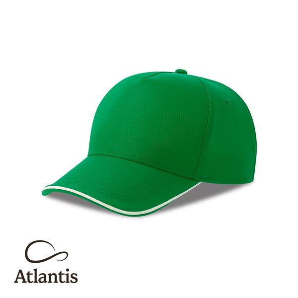 Boné de basebol, em poliéster reciclado. 5 painéis, visor curvo, fecho em velcro, 4 ilhoses com debrum na pala. 220gsm, 100% poliéster reciclado.