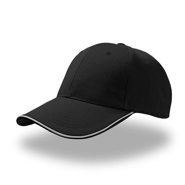 Boné de basebol com 6 painéis em sarja 35% algodão e 65% poliéster.