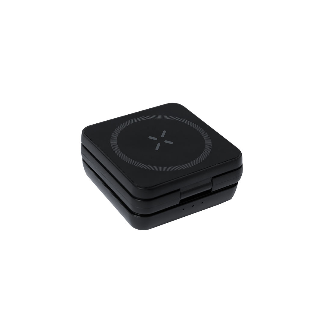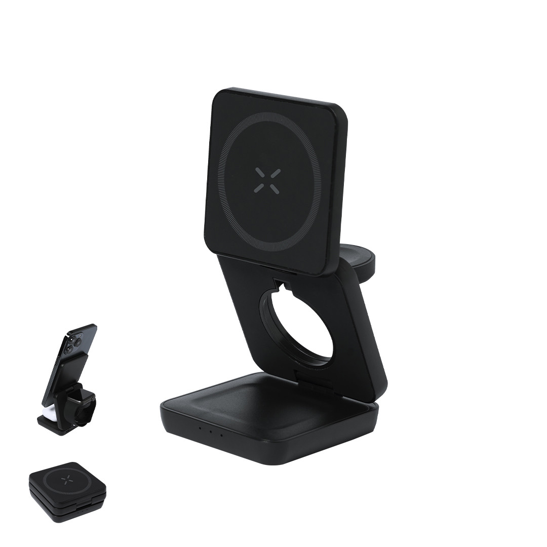 Carregador wireless magnético 4 em 1 de 15W, fabricado em ABS reciclado (RABS). Projetado para o carregamento simultâneo de smartphone, fones de ouvido, smartwatch e suporte. Um gadget tudo em um: dobrável, portátil, de tamanho compacto, muito versátil e de design funcional. Acabamento fosco com toque de borracha. Conexão por usb Tipo C -cabo incluído-.O RABS é um plástico altamente reciclável de grande resistência e com múltiplas aplicações que o tornam uma solução ecologicamente correta.Fabricado conforme os padrões RoHS e em conformidade com os seguintes requisitos de segurança:Sistema de proteção contra superaquecimento.Sistema de proteção contra sobrecarga.Sistema de bloqueio para evitar curtos-circuitos. Sem Fios 15W. Magnético. Dobrável
