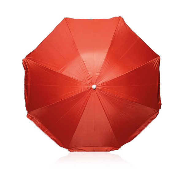 Guarda-sol com proteção UV. Proteja-se a si e à sua família do sol quando vai até à praia. Com este chapéu de 180cm de diâmetro com proteção UV, ir à praia ficou ainda mais seguro. De fácil transporte graças à sua bolsa a combinar com o material do chapéu. Ótima área para personalizar.