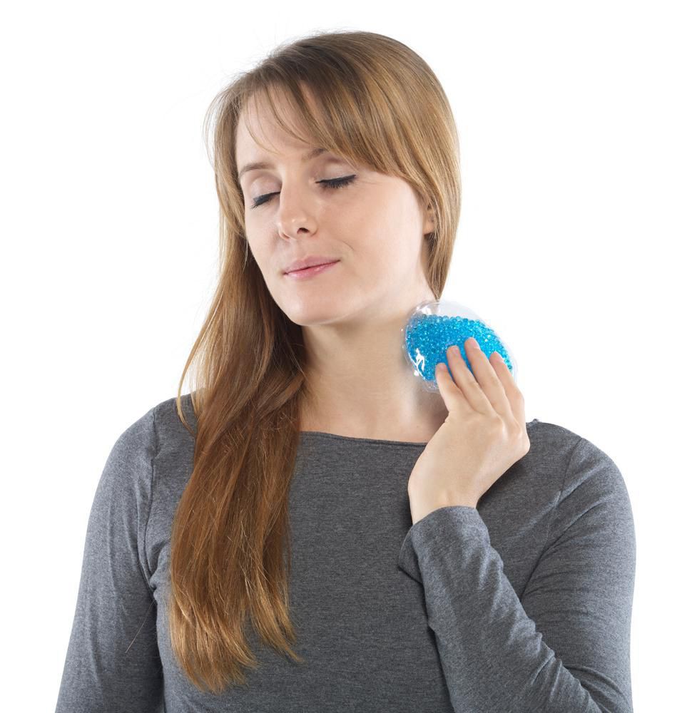 Bolsa de quente e frio, redondo de plástico, dentro com pérolas de gel. Pode ser reaquecido (banho-maria) ou esfriar (congelador) após o uso.