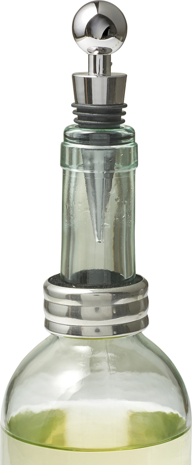 Conjunto de quatro peças para vinho em aço inoxidável.