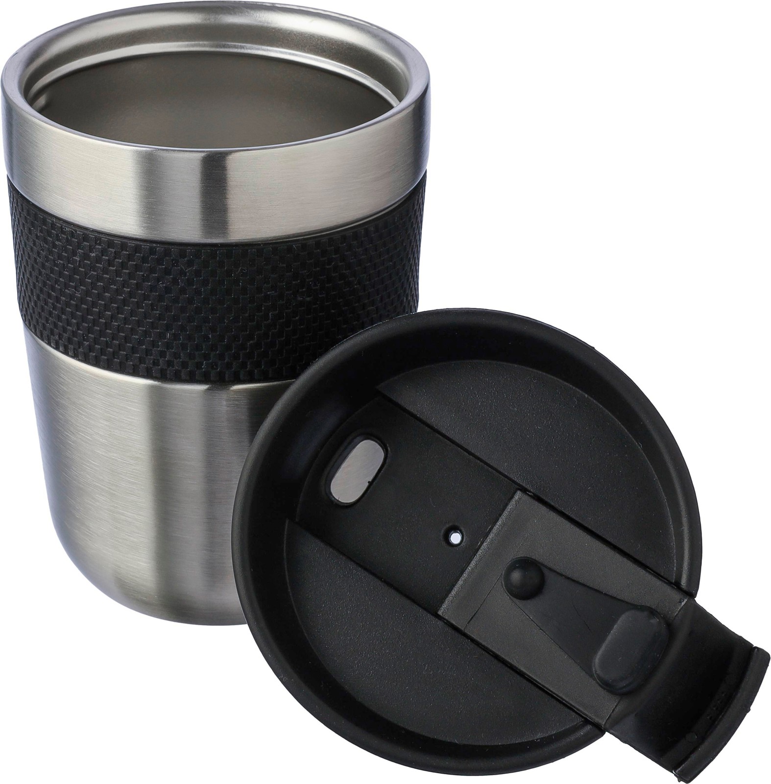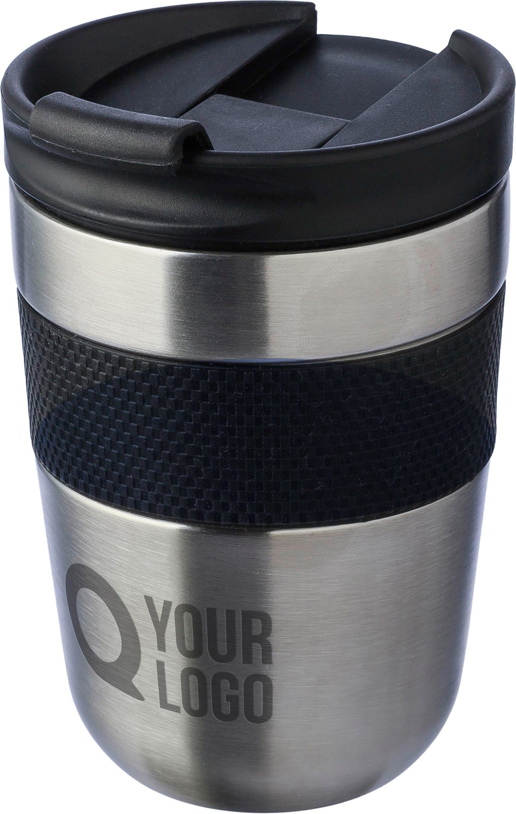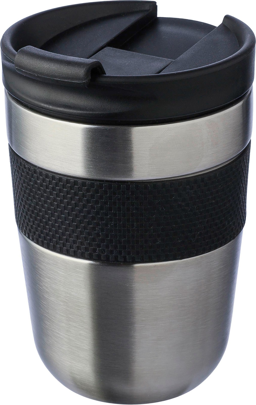 Copo de aço inoxidável de parede dupla (300 ml) com tampa em PP e pega em silicone. Mantém o conteúdo quente durante 4 horas e frio durante 6 horas. O interior é feito de aço inoxidável 304 e o exterior é de aço inoxidável 201. Apresentada individualmente numa caixa de cartão castanha.