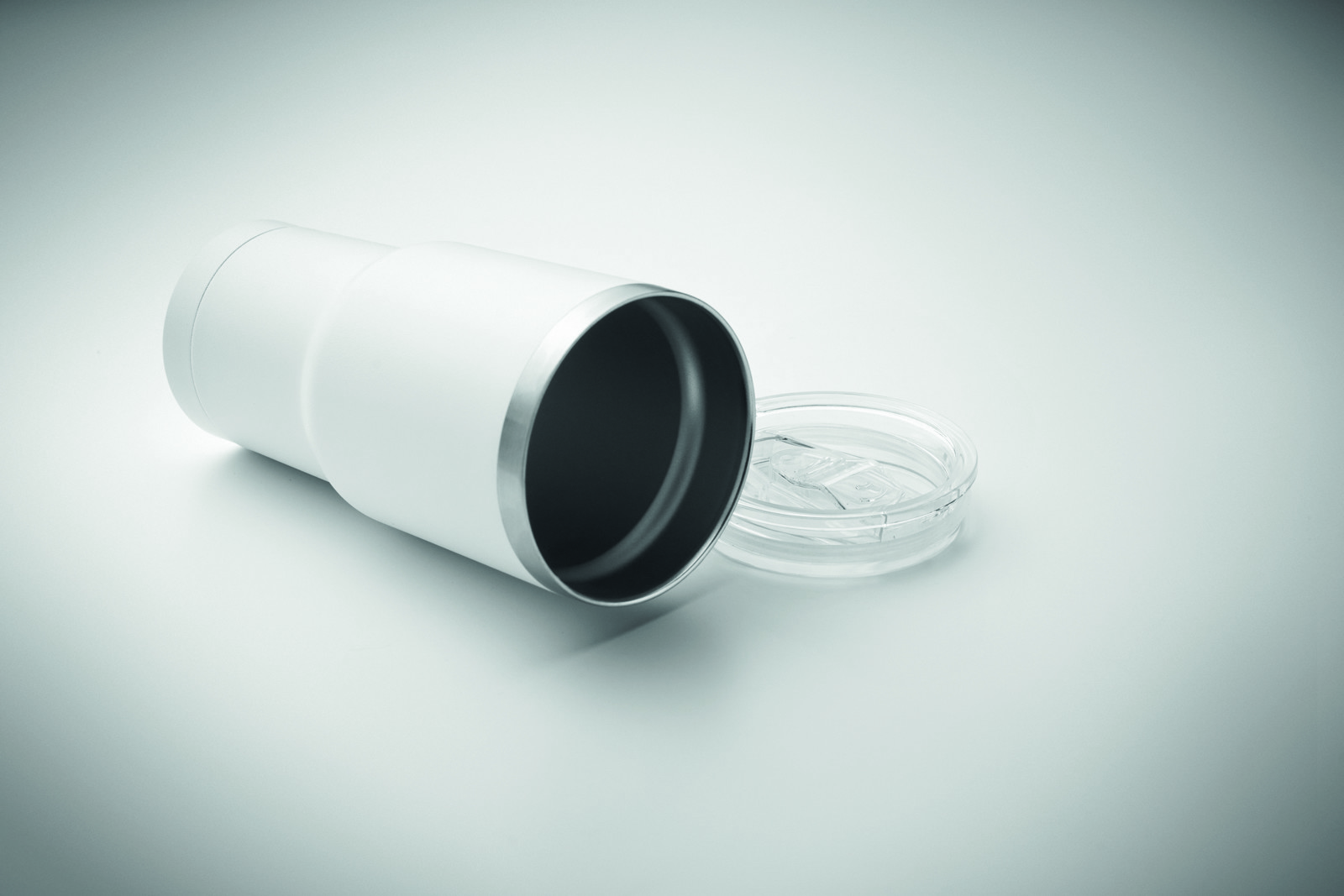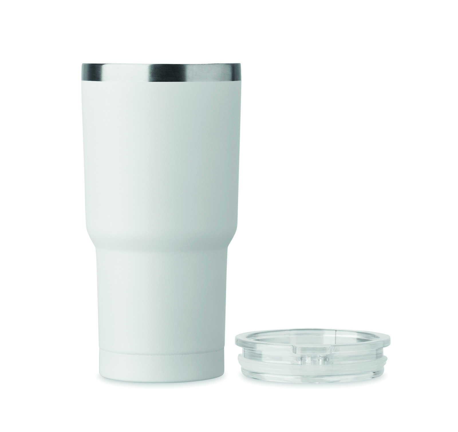 Copo de parede dupla em aço inoxidável reciclado (90% aço inoxidável reciclado e 10% aço inoxidável). Tampa com abertura deslizante. À prova de fugas. Capacidade de 500 ml.
