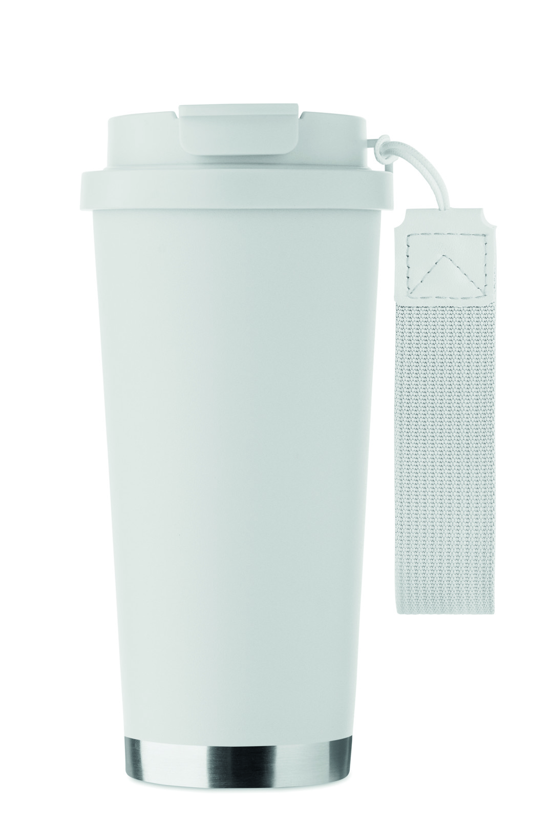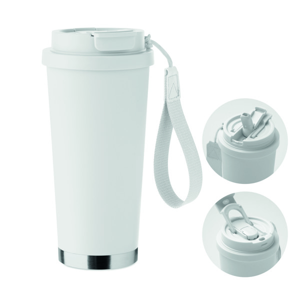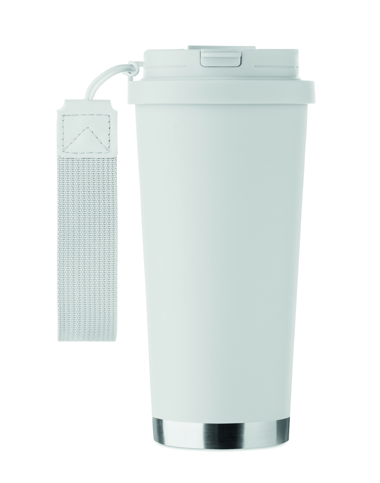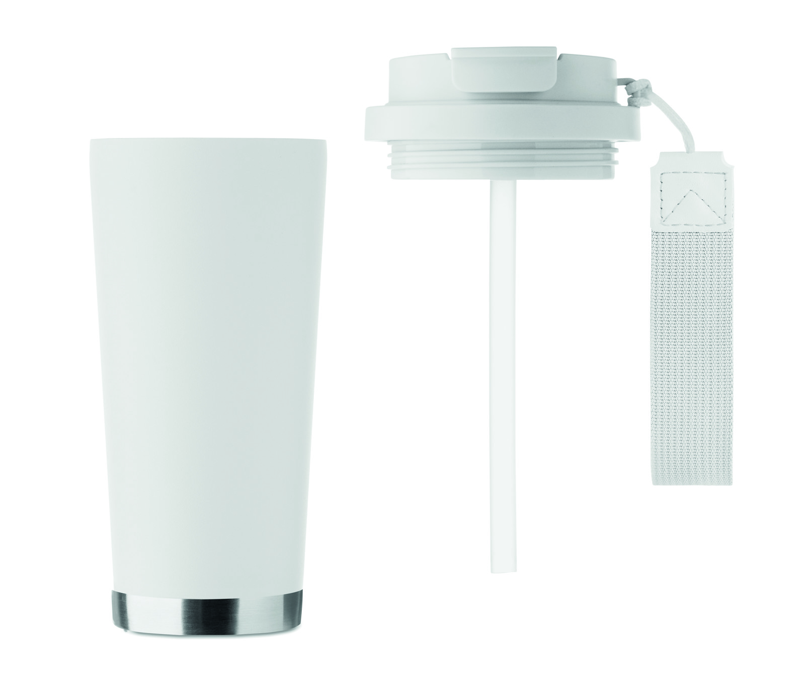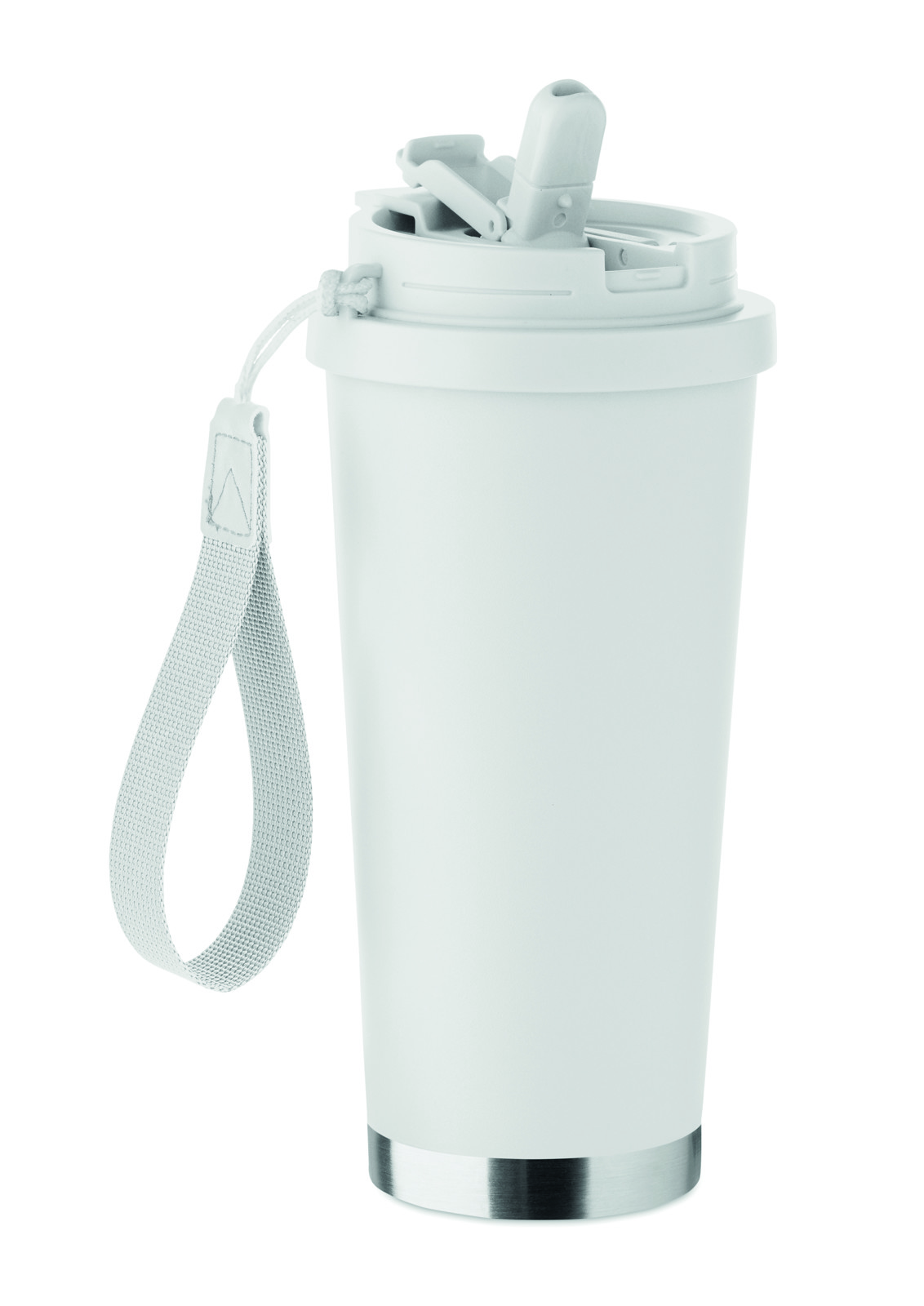 Copo de aço inoxidável reciclado de parede dupla com tampa PP (tampa 2 em 1 para beber e palhinha) e com alça de transporte RPET. Sem fugas. Capacidade: 500 ml.
