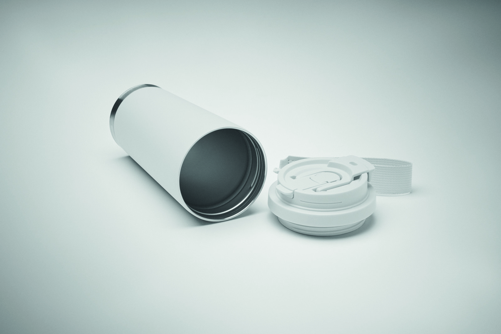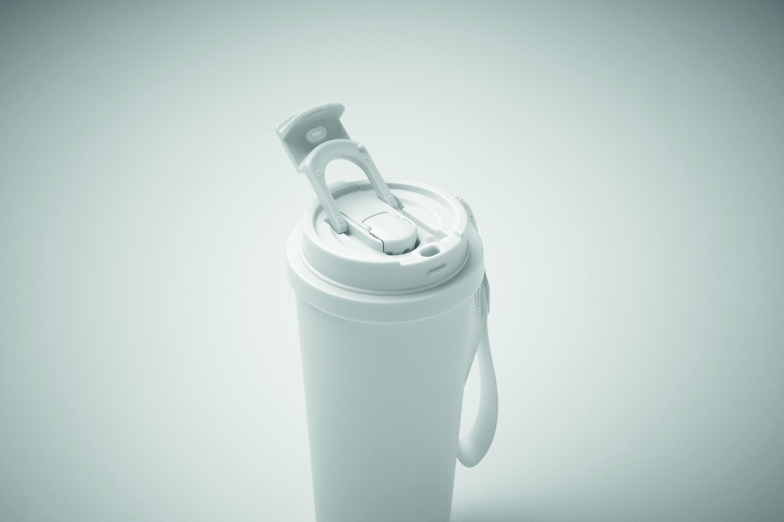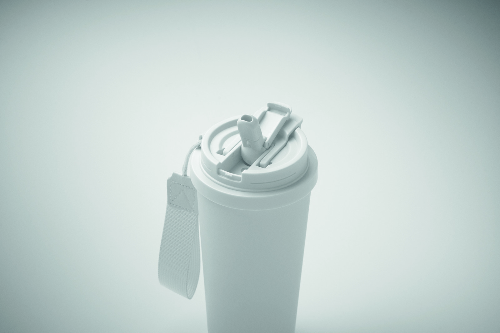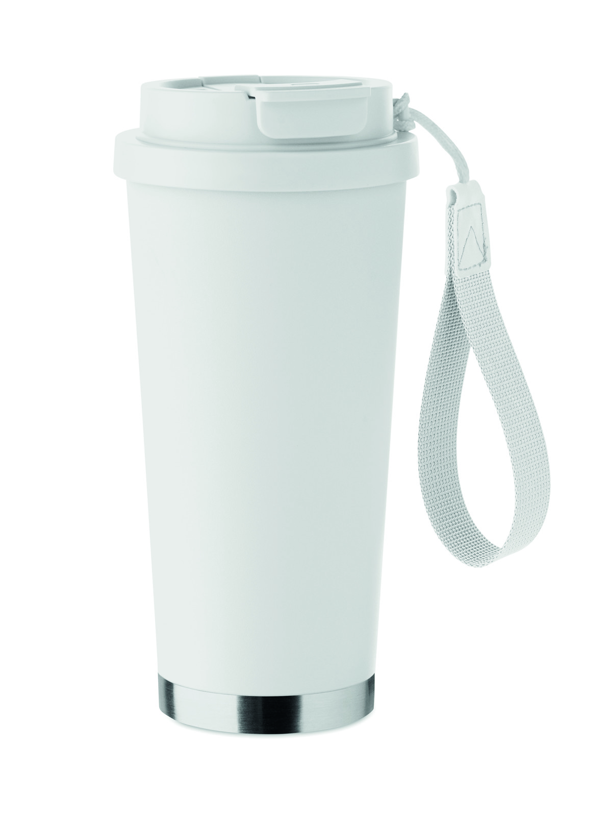Copo de aço inoxidável reciclado de parede dupla com tampa PP (tampa 2 em 1 para beber e palhinha) e com alça de transporte RPET. Sem fugas. Capacidade: 500 ml.