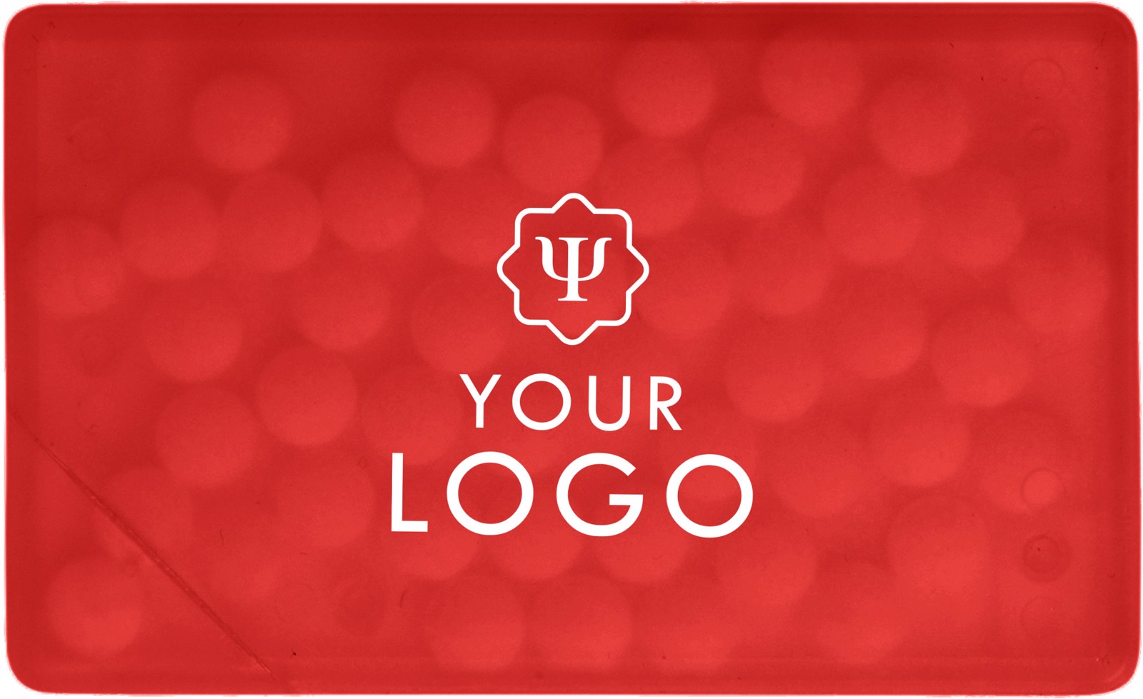 Dispensador em forma de cartão de crédito com 50 rebuçados de menta sem açúcar.