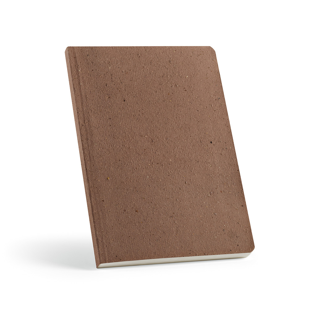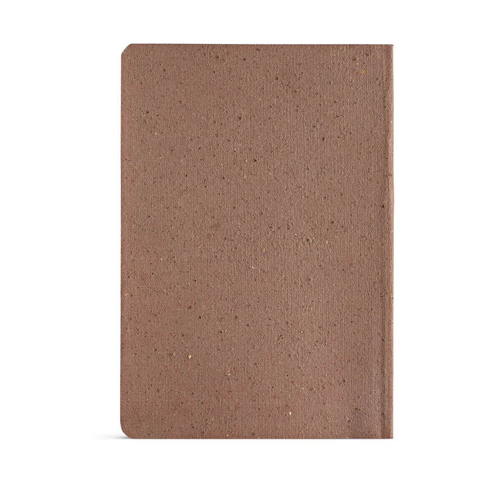 Caderno Doyle A5, com capa de café única, apresenta 196 páginas recicladas pontilhadas (80 gsm), com espaço para data e número de página. Capa flexível prática — ideal para organizar as suas ideias com conveniência. Fornecido numa manga individual de kraft.