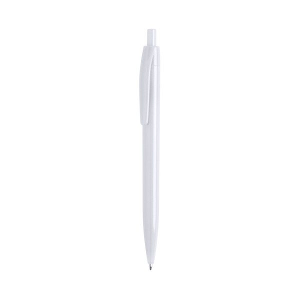 Esferográfica de mecanismo pulsador, de design monocromático em várias de cores vivas e brilhantes. Tinta azul