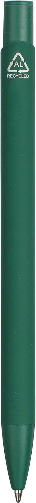 Esferográfica de alumínio reciclado com um revestimento de borracha no corpo. O clip, a ponta e o empurrador são da mesma cor. O clip é feito de metal e a ponta de plástico. Aprox. 800 metros de comprimento de escrita. Inclui logótipo gravado em alumínio reciclado. Tinta azul.