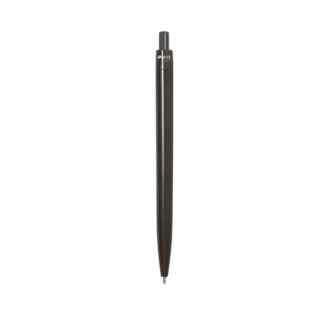 Caneta fabricada em fibra de café. Com mecanismo de pressão e tinta azul. Inclui distintivo fibra de café.A fibra de café é uma solução circular que se obtém da utilização dos resíduos produzidos na obtenção do café. Uma alternativa sustentável que favorece a redução do uso de plásticos, economizando energia em seu processo de fabricação e contribuindo para a preservação do meio ambiente.
