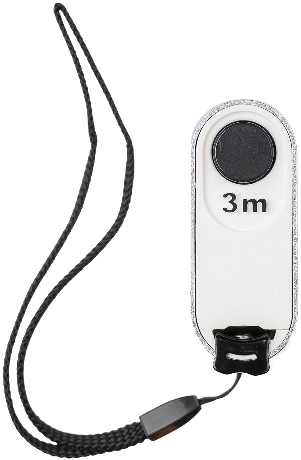 Fita métrica em alumínio. 3 metros de comprimento. Com botão de pressão e centímetros impressos, incluindo cordão de pulso. Apresentada individualmente numa caixa de cartão castanha.