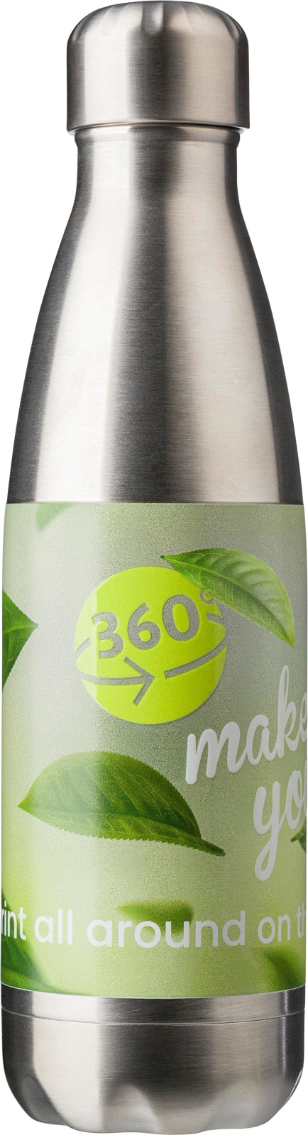 Garrafa (500 ml) em aço inoxidável com parede dupla, tampa de rosca. À temperatura ambiente, conserva o líquido entre 4-6 h. quente/frio (aprox.).