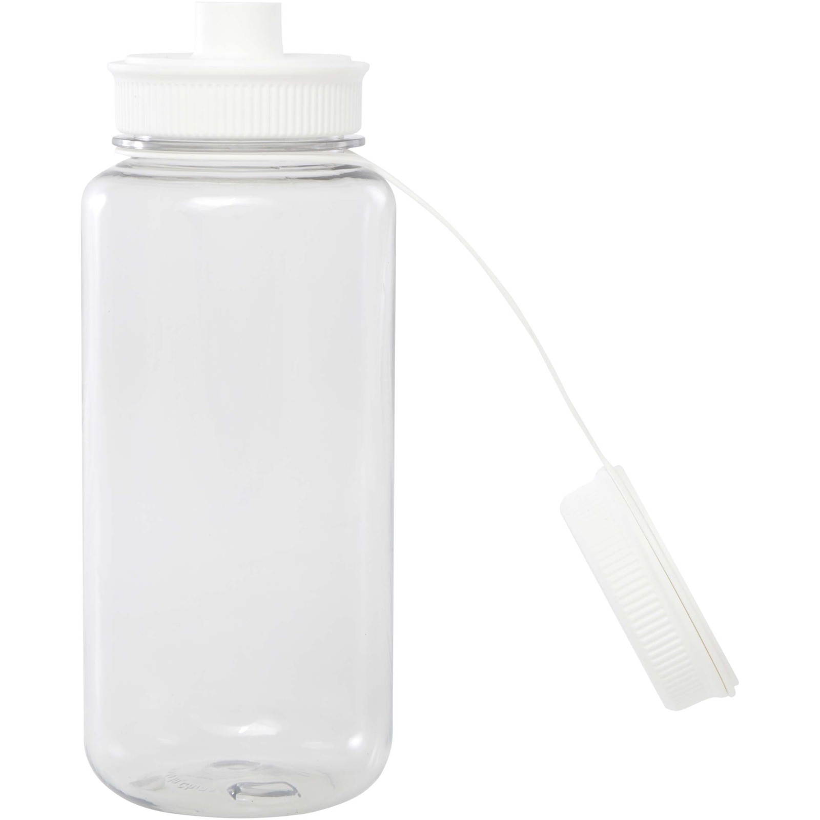 Garrafa de desporto de parede única feita de RPET com certificação RCS, com tampa de rosca e à prova de fugas, com uma pega prática integrada à tampa para transporte. Construção com abertura dupla para facilitar a limpeza e o enchimento. Em conformidade com o processo de reciclagem PET aprovado pela EFSA (Autoridade Europeia para a Segurança dos Alimentos). Capacidade volumétrica: 900 ml.