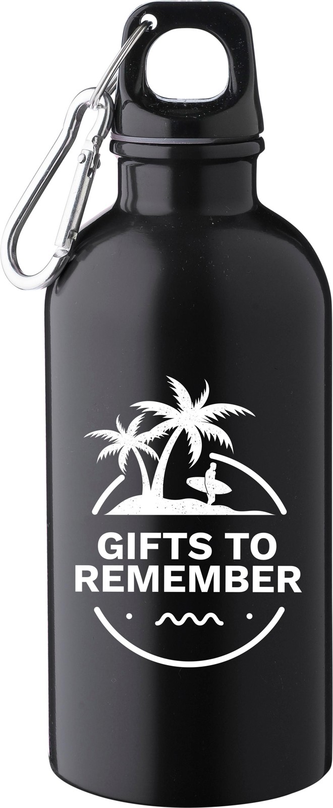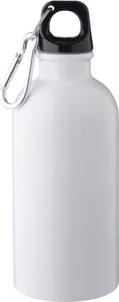 Garrafa de parede simples em aço inoxidável (s/s304) reciclado com uma capacidade de 400 ml, tampa em PP e mosquetão em alumínio prateado. Apresenta um logótipo reciclado gravado na parte da frente.