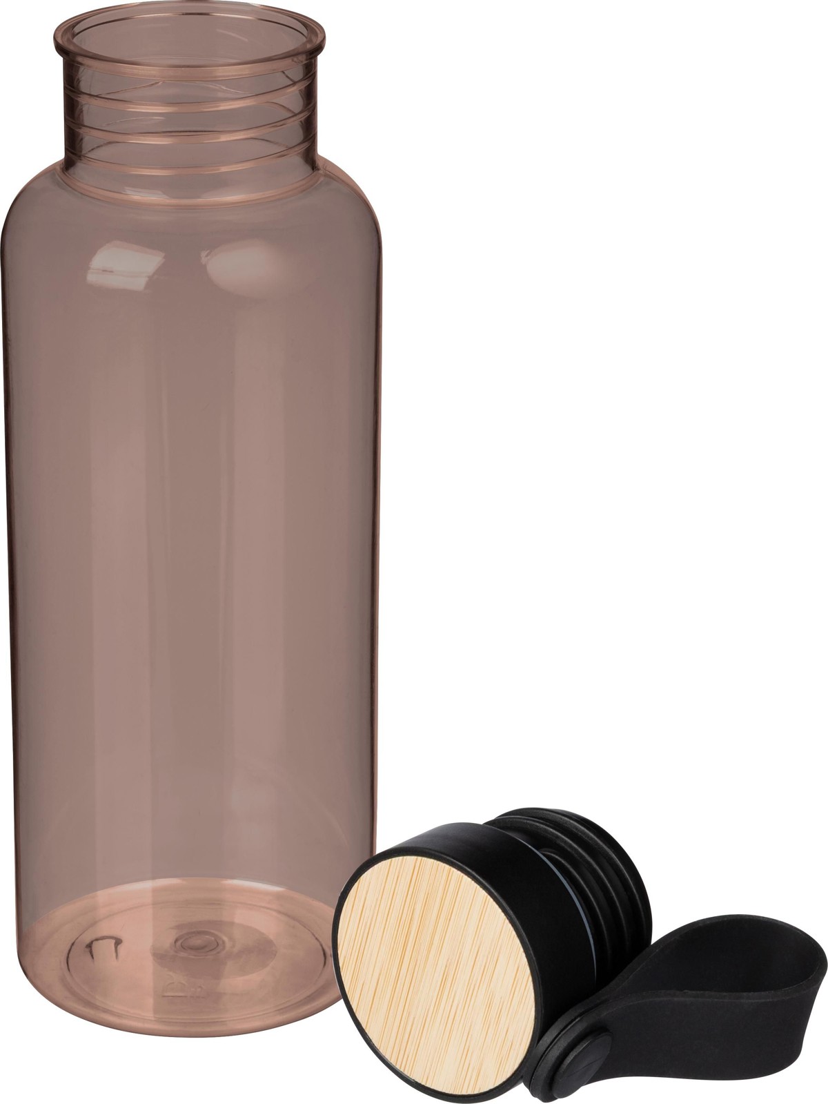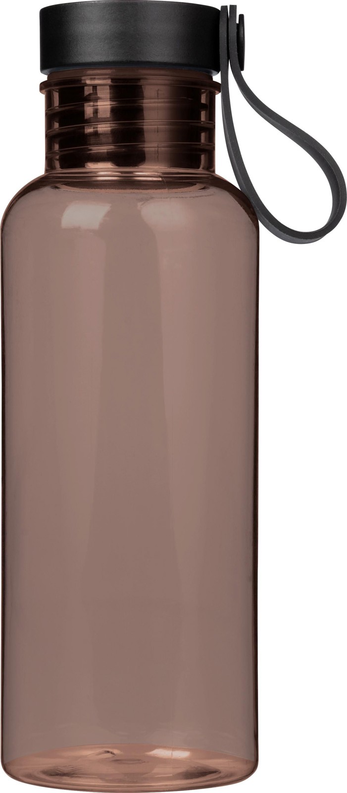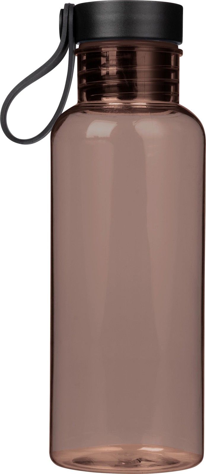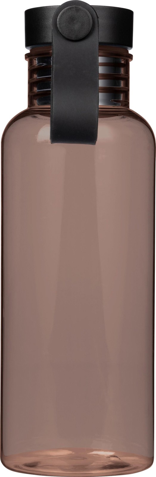Garrafa em rPET (600 ml) com tampa de PP com botão de pressão e pega de silicone. Botão de pressão para abrir ou fechar o bico. Apresentado individual