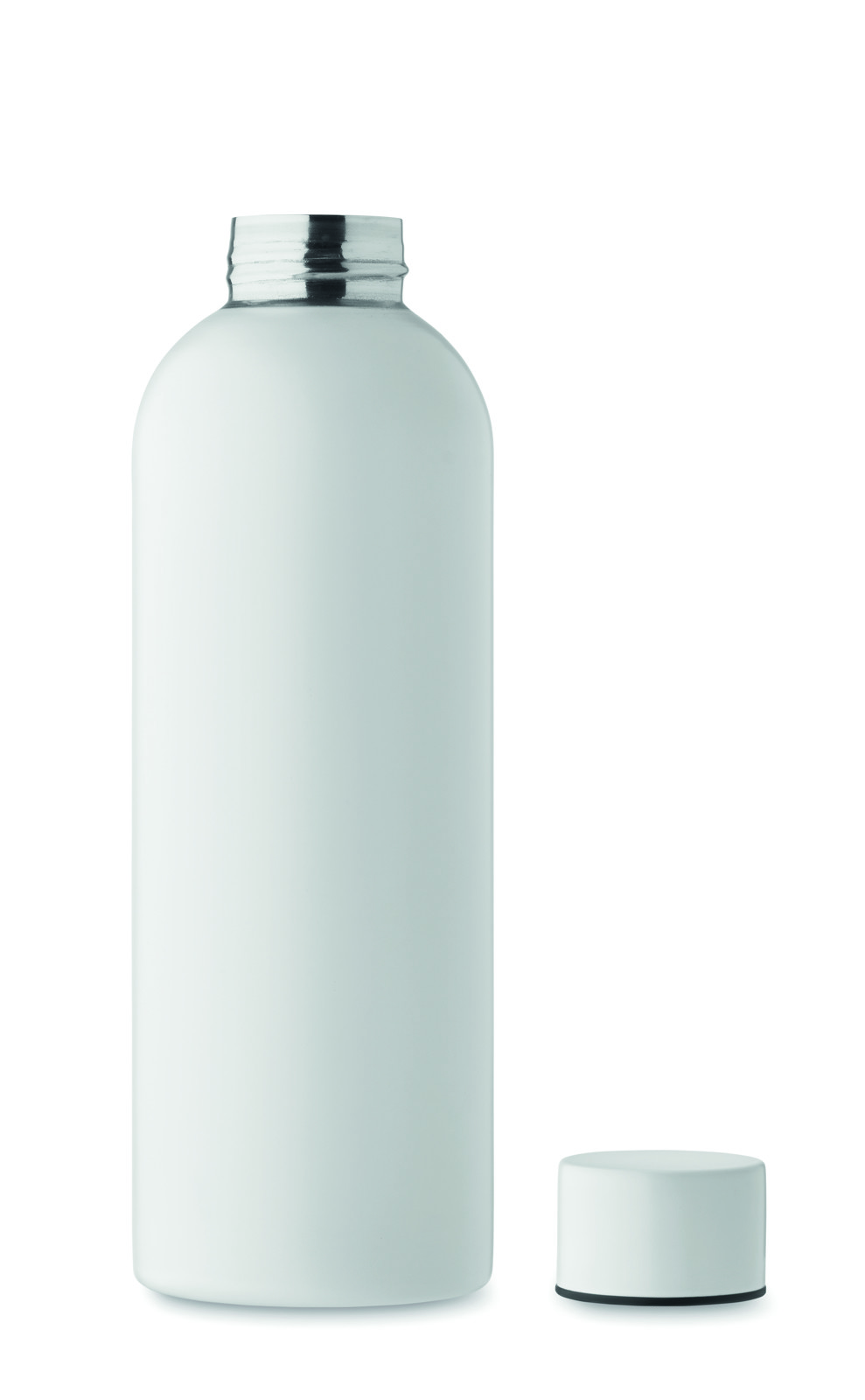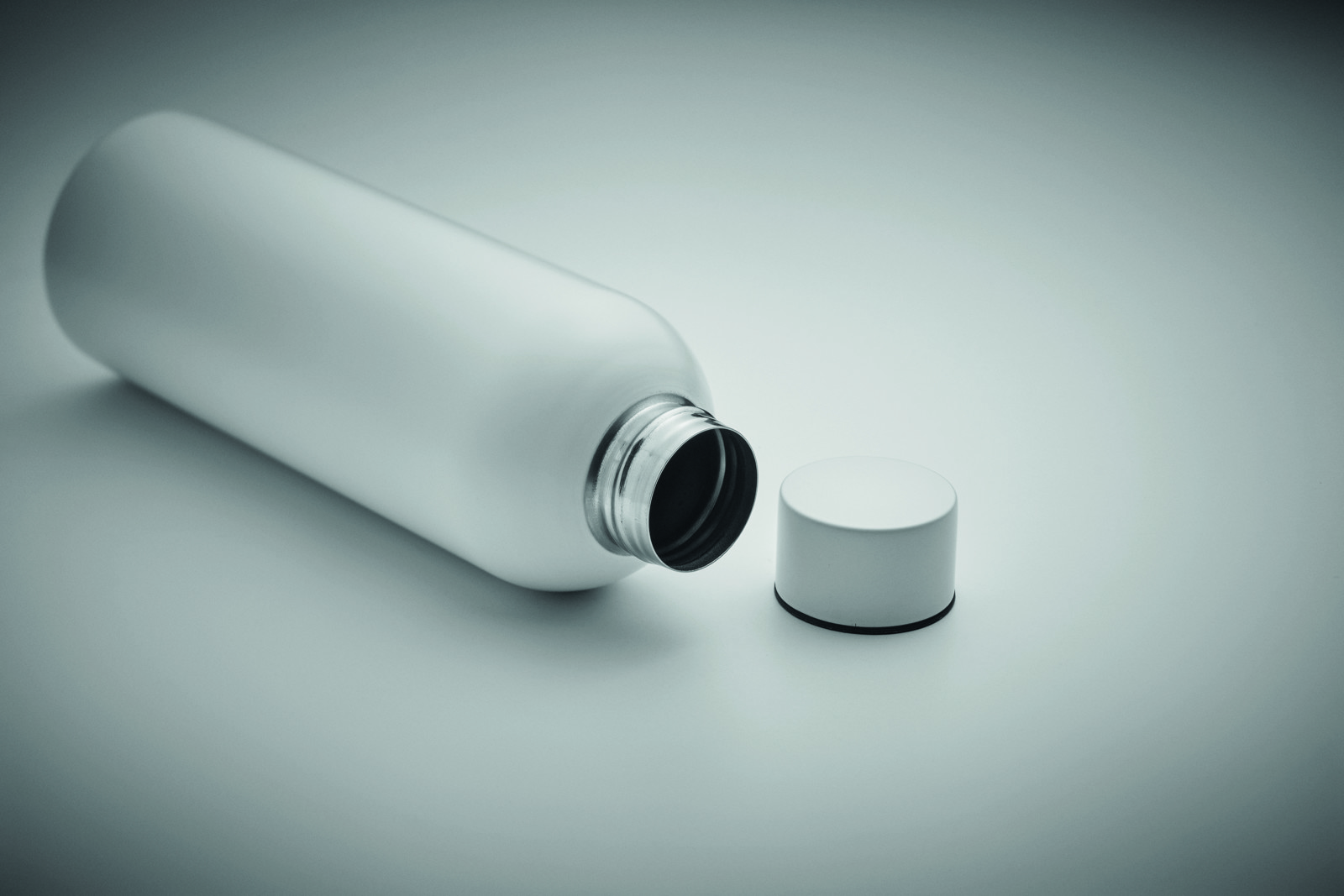Garrafa de parede simples em aço inoxidável reciclado (90% aço inoxidável reciclado e 10% aço inoxidável). Anti-vazamento. Capacidade 750 ml. Como garrafa de parede única, pode ocorrer transferência de calor.