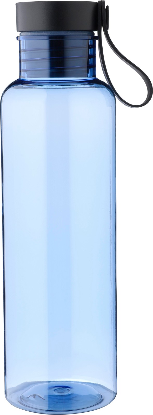 Garrafa de rPET de parede simples (750 ml) com uma tampa em PP com um pormenor de bambu na parte superior e uma alça de transporte em silicone. Embalada individualmente Num saco de plástico reciclado, com embalagem em caixa de ovo para expedição.