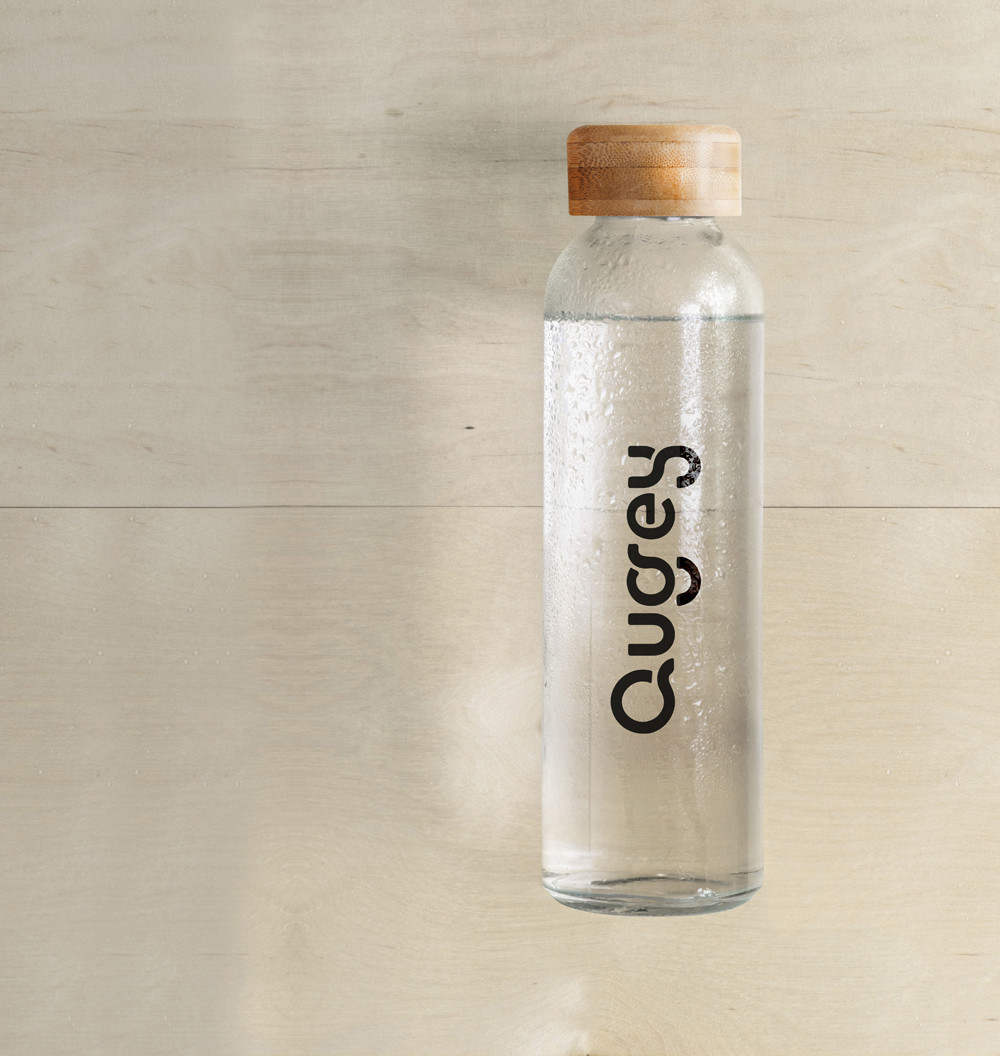 Garrafa fabricada em vidro com 500 ml de capacidade, com tampa fabricada em madeira natural bambu.
