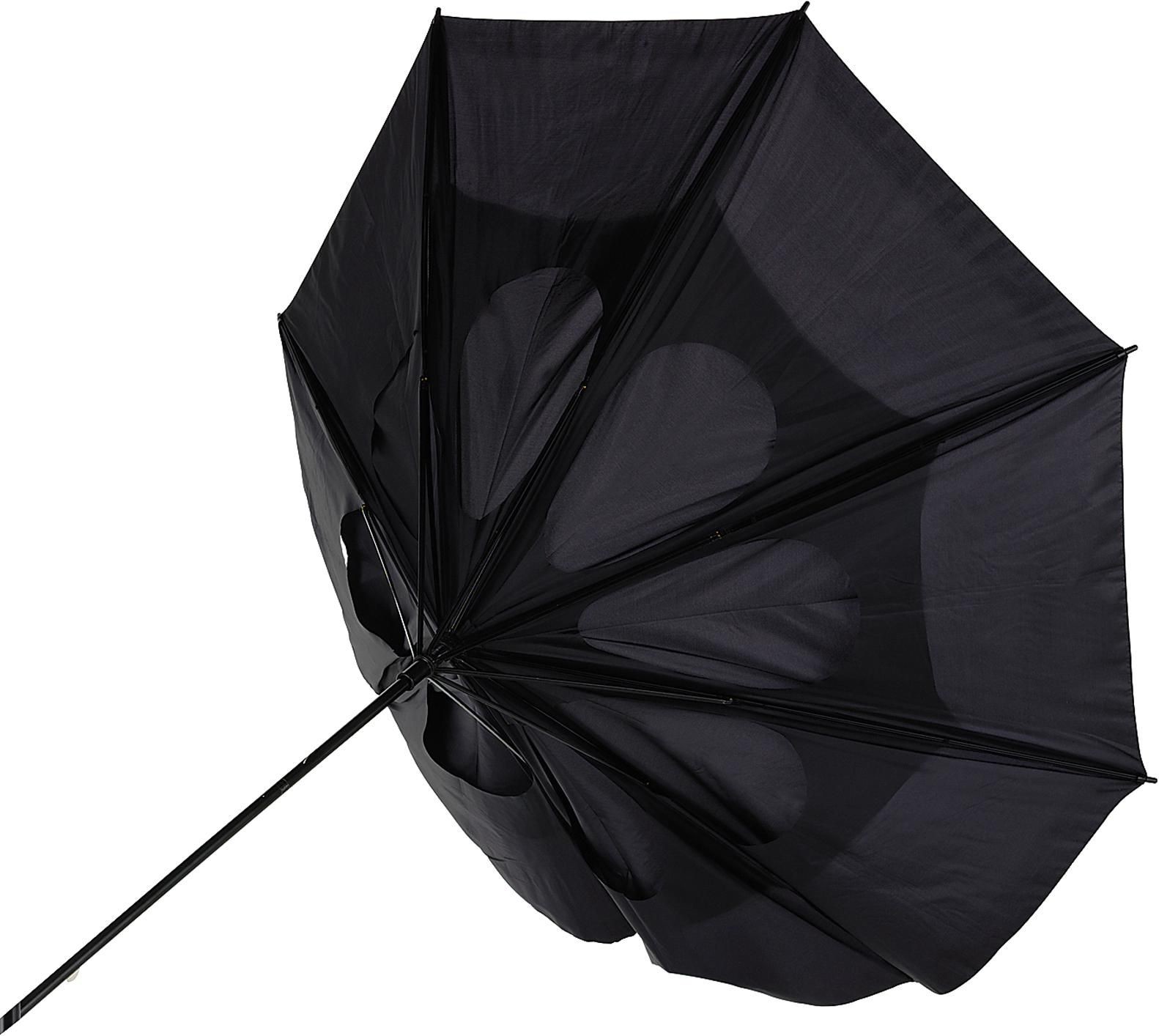 Guarda-chuva manual anti-tempestade com 8 painéis de poliéster 210T, punho de borracha, cabo e varetas de metal, fecho de velcro e capa a condizer.