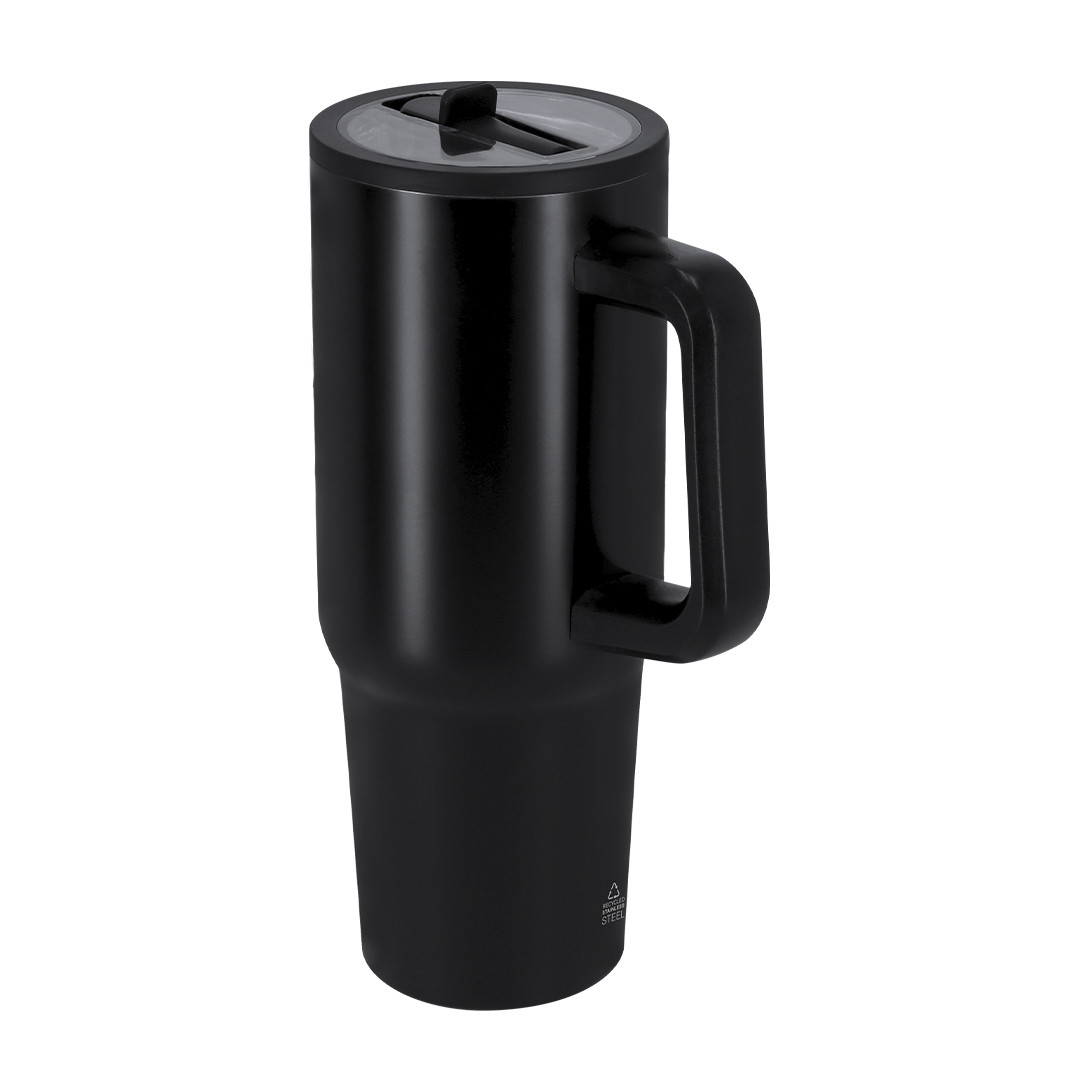 Jarro térmico de 870 ml fabricado em Aço Inoxidável Reciclado com parede dupla, que garante uma melhor e mais duradoura conservação da temperatura, tanto para bebidas frias como quentes. Equipado com tampa hermética que incorpora um bico dobrável para beber. Asa de transporte ergonómica para maior comodidade. Livre de BPA. Inclui distintivo de Aço Inoxidável Reciclado. O aço é um dos materiais mais procurados e pode ser encontrado praticamente em todo o lado, desde produtos de uso diário até grandes construções. Com inúmeras propriedades, destacando-se a durabilidade e o elevado grau de reutilização, torna-se uma alternativa muito valorizada em soluções de sustentabilidade. Quando devidamente tratado, permite obter novos recursos de utilização infinita. 870 ml