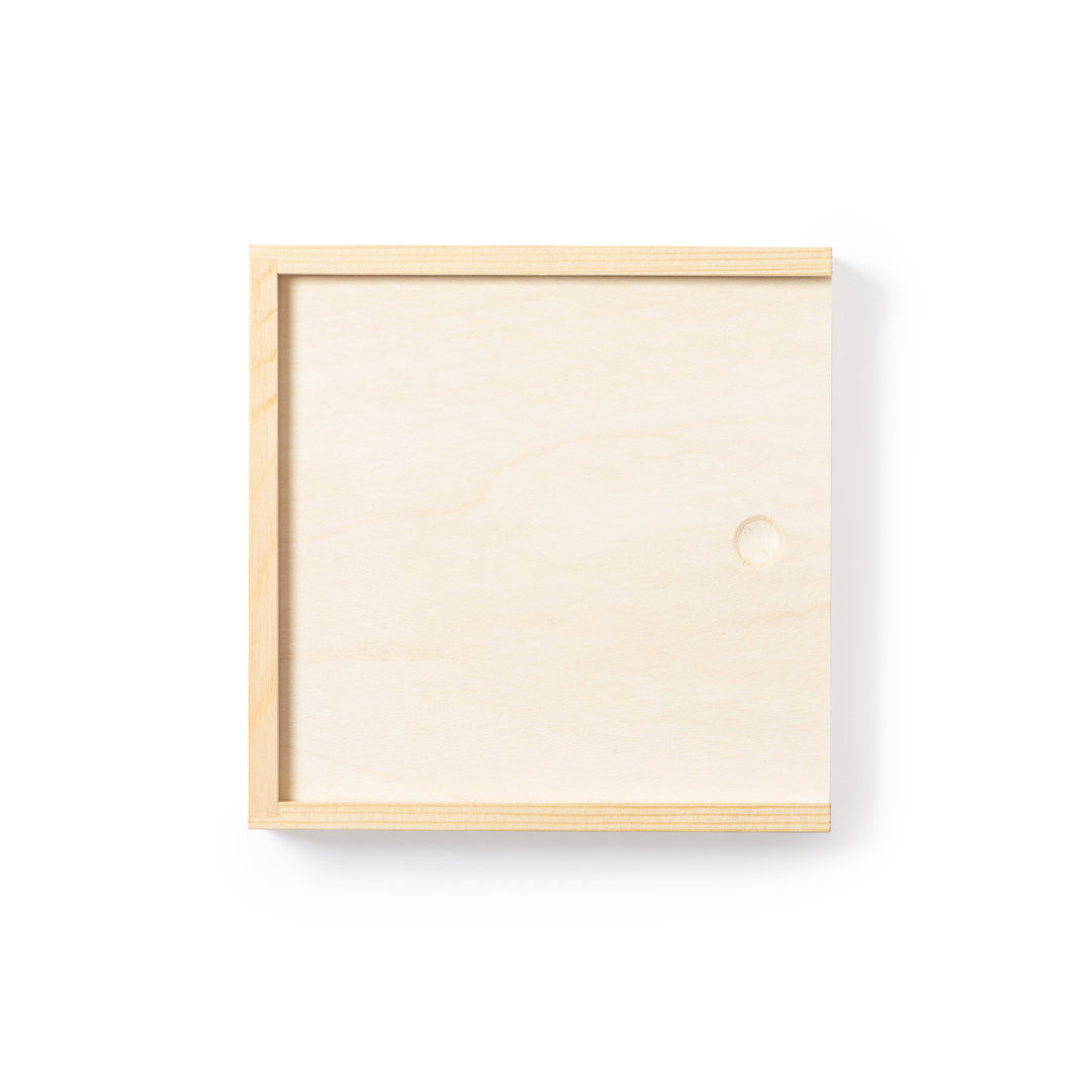 Jogo de habilidade fabricado em madeira resistente. Com 13 peças em caixa de madeira com tampa. Apresentação numa caja individual de design kraft. 13 Peças