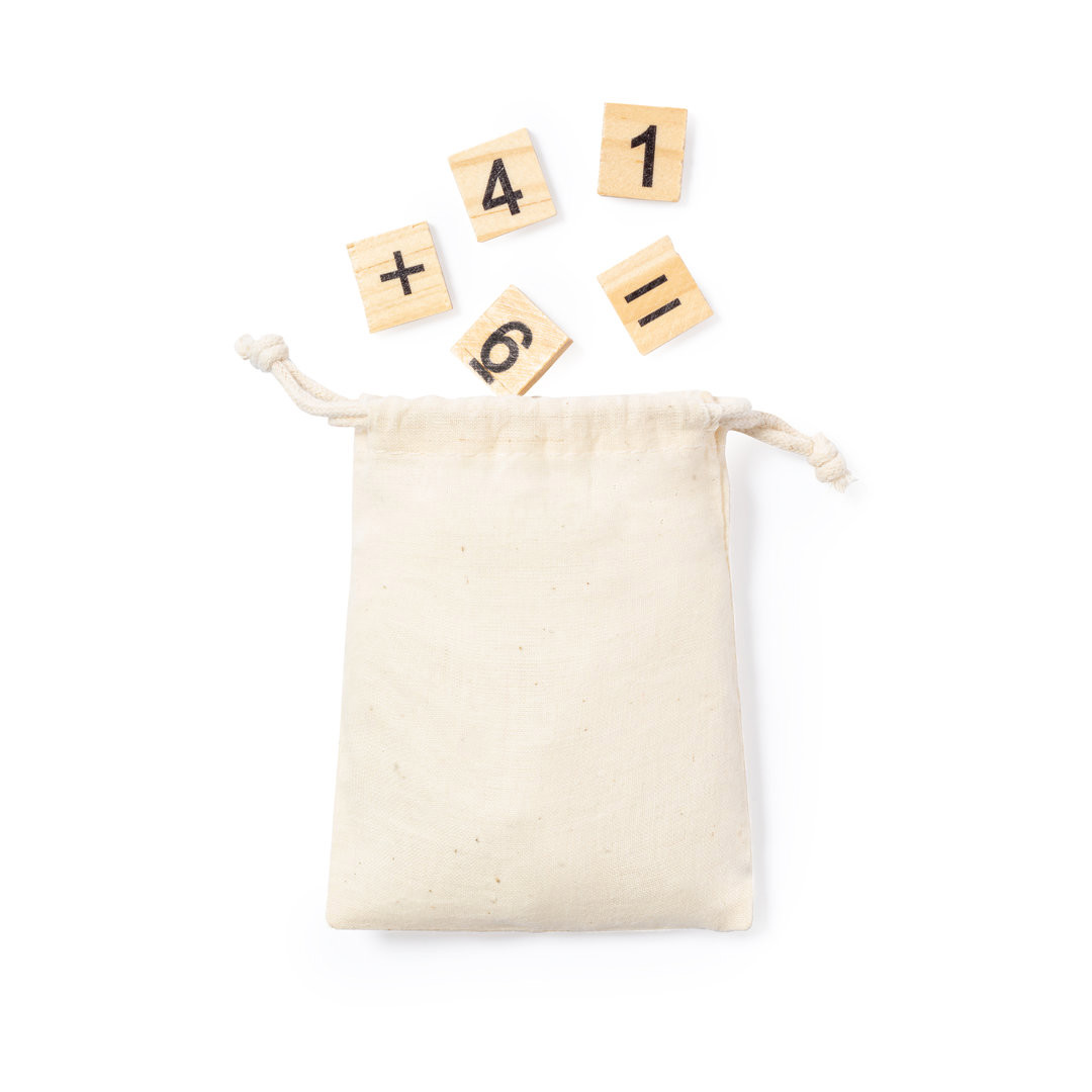 Jogo de cálculo fabricado em resistente madeira natural de pinho. Conjunto de 32 peças em bolsa de transporte algodão com cordões de fecho a condizer. 32 Peças. Bolsa Algodão