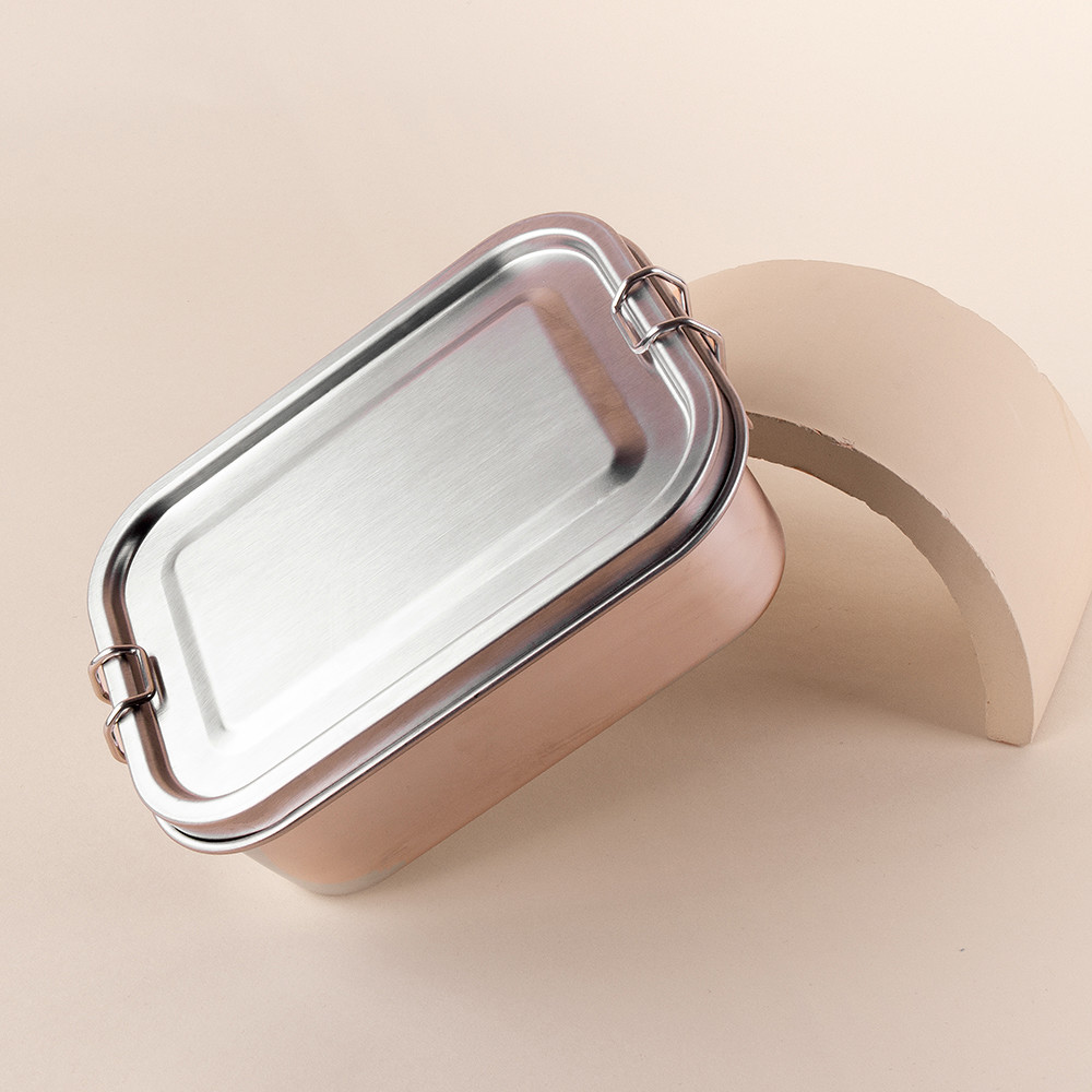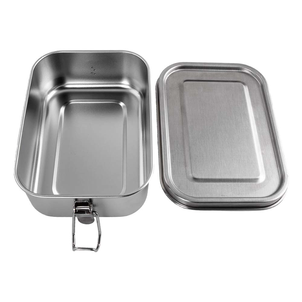 Lancheira de aço inoxidável com fecho à pressão. Com capacidade para 700 ml.