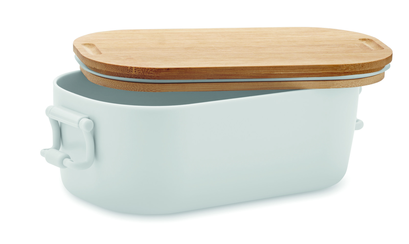 Lancheira em PP com fecho de 2 lados e tampa em bambu. Capacidade 700 ml.