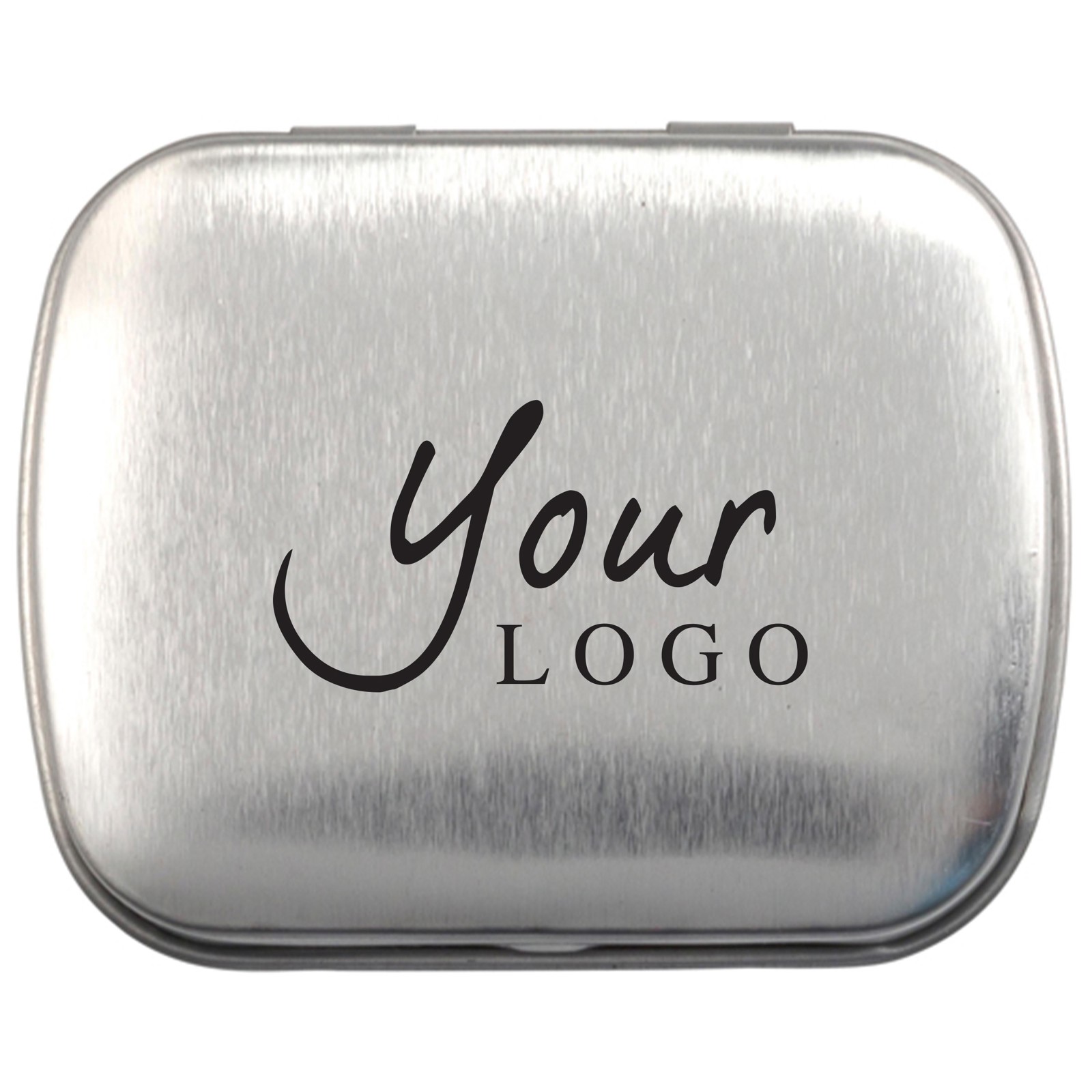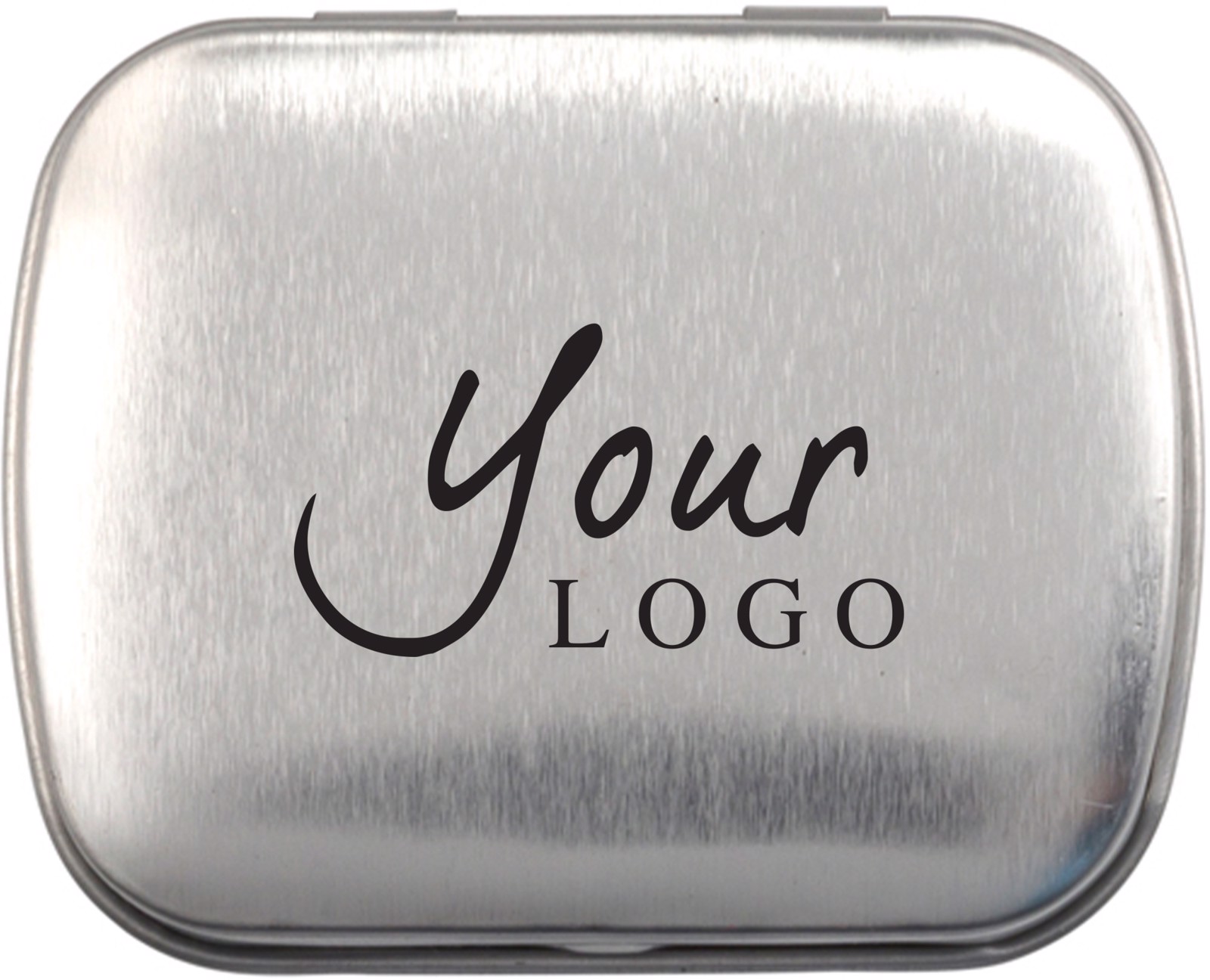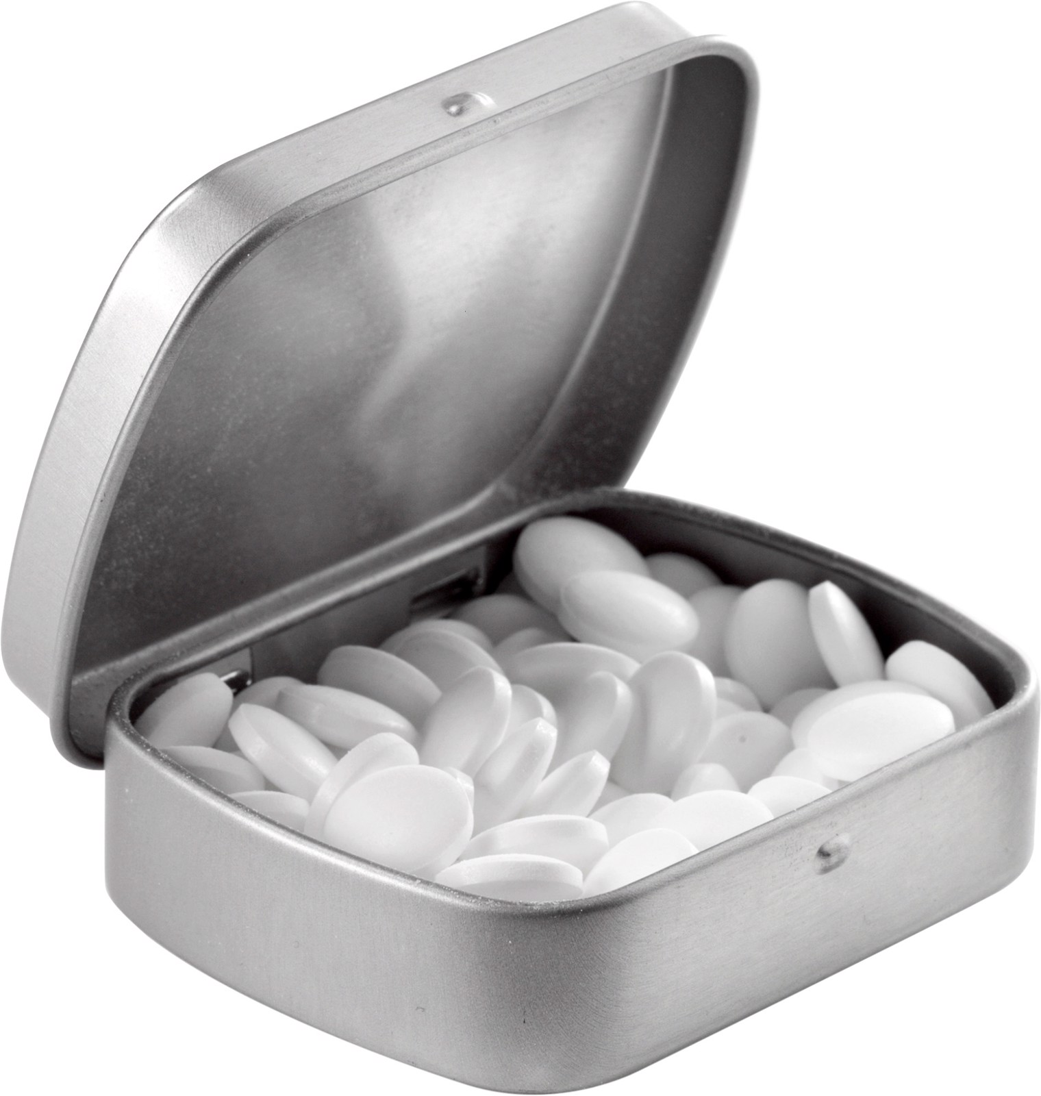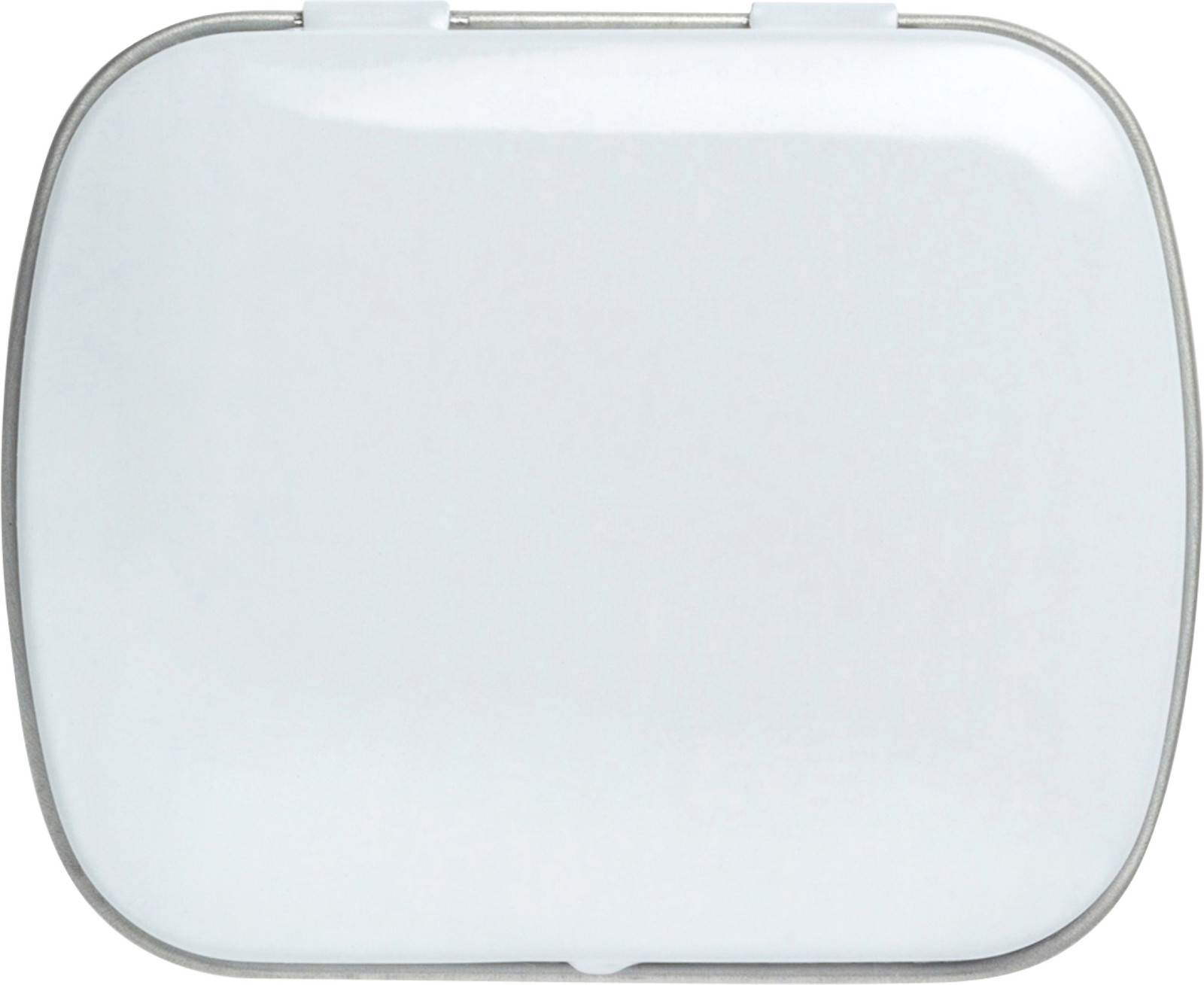 Lata com dobradiça, com 23 gr de rebuçados de menta.