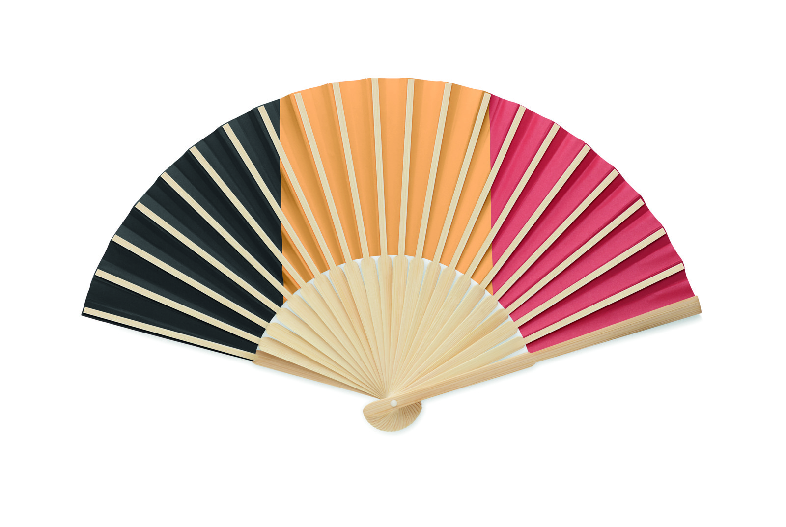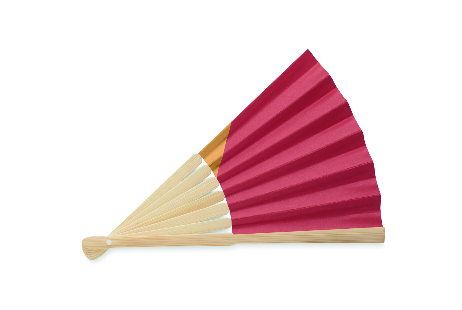 Leque de bambu com desenho de bandeira em tecido de papel.