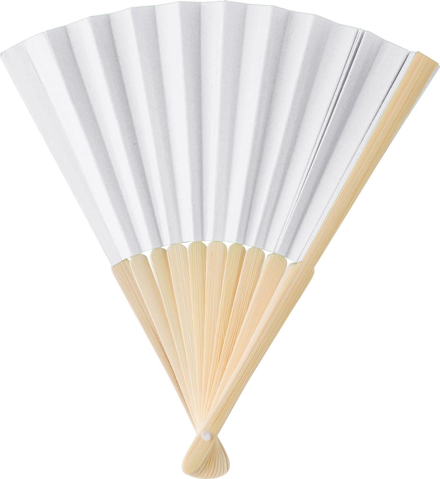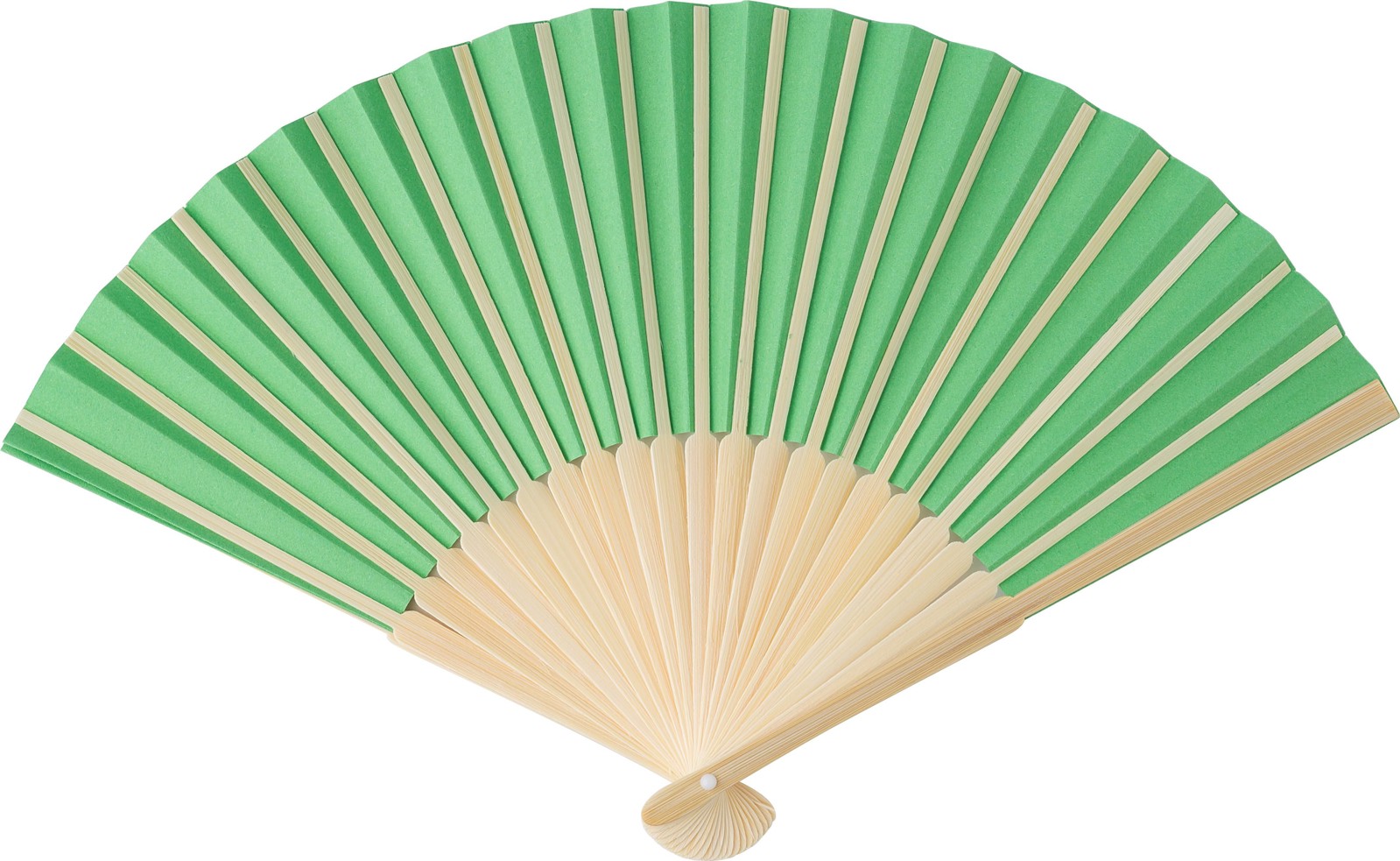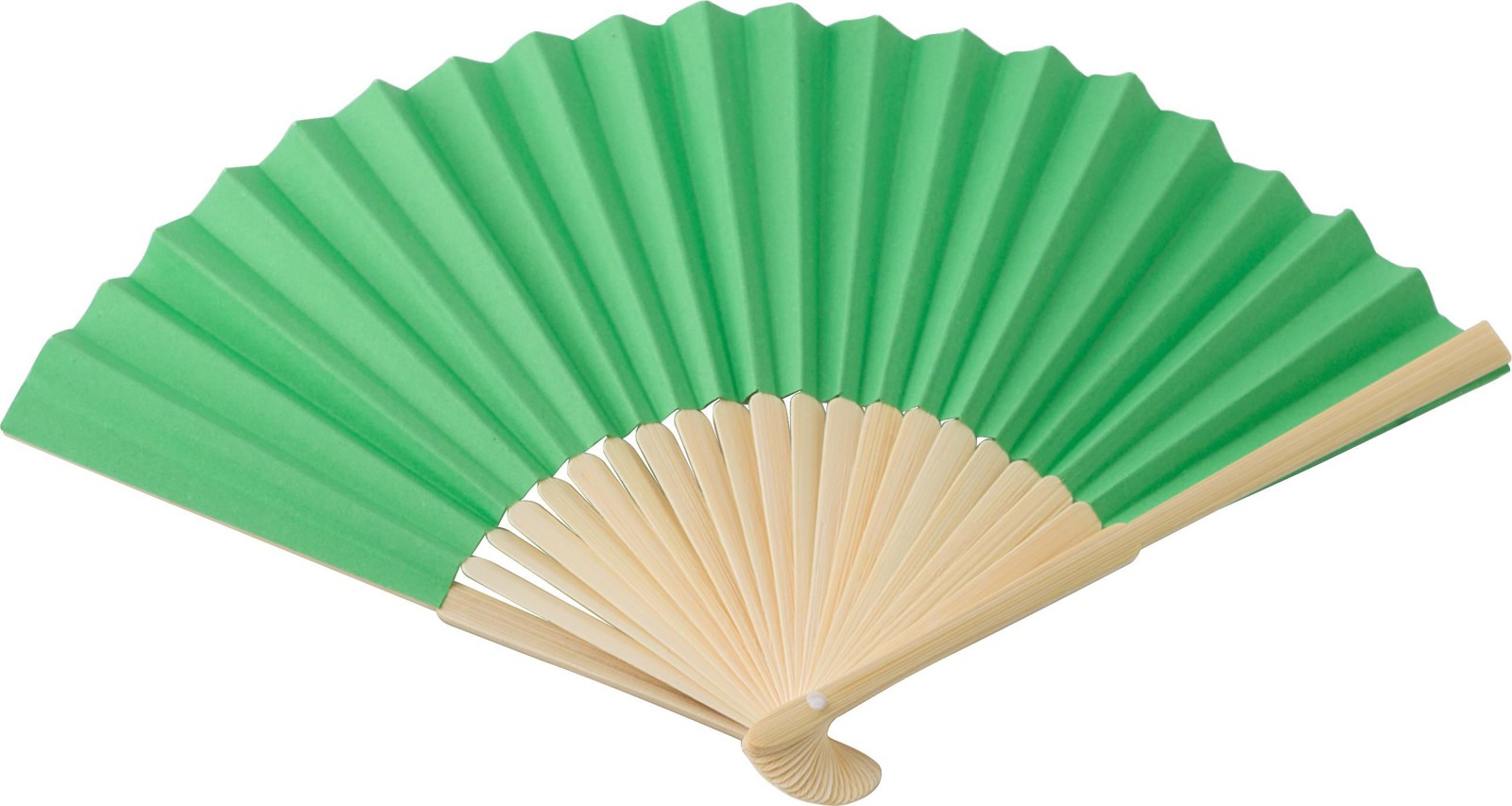Leque de mão em bambu com tecido de papel. Embalado a granel.