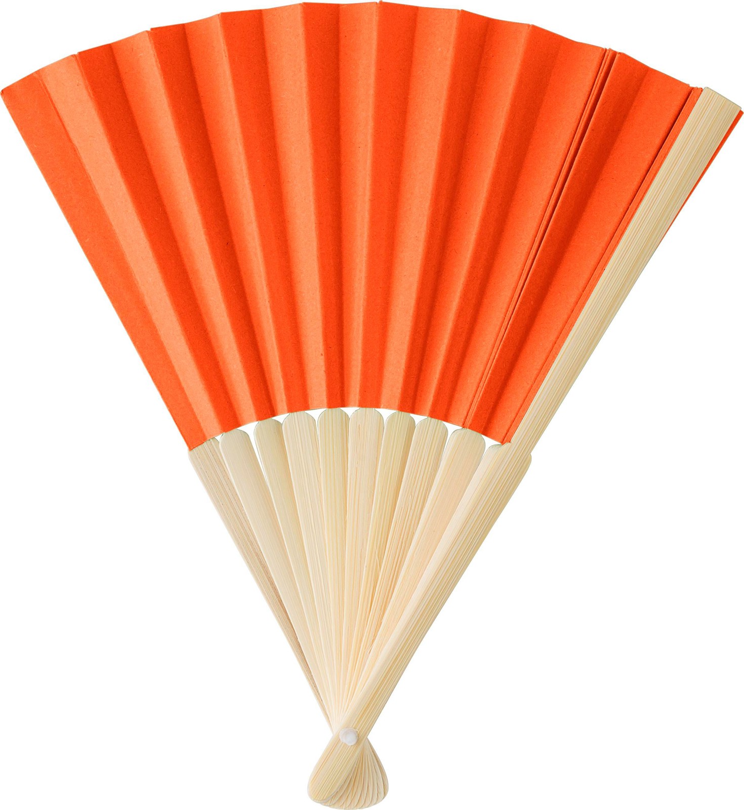 Leque de mão em bambu com tecido de papel. Embalado a granel.
