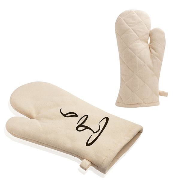 Luva de cozinha 100% algodão. Mesmo quando a criatividade está em voga na cozinha, a segurança deve vir sempre em primeiro lugar. Para evitar queimaduras quando retira o tacho do lume ou o tabuleiro do forno, pode contar com esta luva personalizável, feita em 100% algodão.